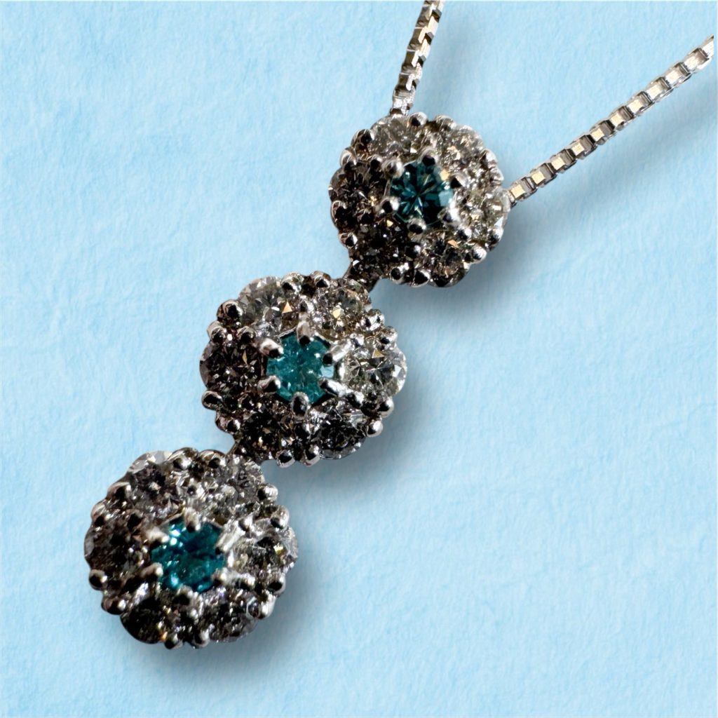 パライバトルマリン3ヶ並び 2026年3月12日 by ijima ブラジル産 パライバトルマリン 三ヶ並びのダイヤモンド取り巻きペンダント 枠はPt900 チェーンはPt850/1000 絶滅希少石 ブラジル産パライバを3ピース使用した贅沢な作品。 パライバトルマリン 合計 0.04ct ダイヤモンド 0.23ct 税込220,000円で販売いたします。