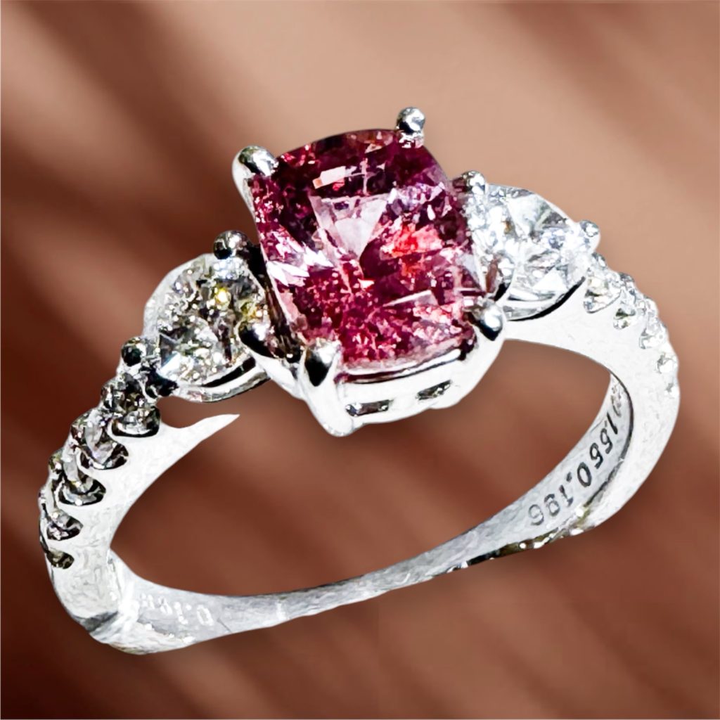 パパラチアサファイア 2026年4月6日 by ijima パパラチアサファイア 1.55ct 両腕ダイヤメレ 0.175ct 両脇サクラダイヤモンドは、 0.198ct/0.196ct D VS2 発色が鮮やかな美しいパパラチアサファイア。 敢えてシンプルに作りました。 三味型のプロポーションも安定感があるので、シンプルながらに高級感を出している。 お買い得価格は店頭で。