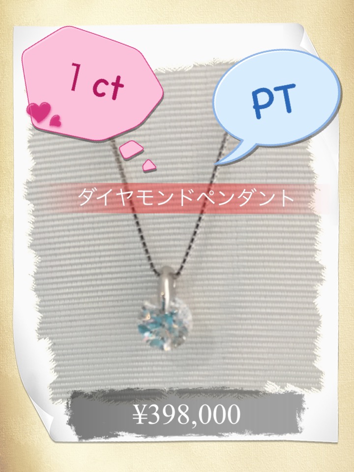 1ct ダイヤモンドペンダント プラチナ枠、プラチナチェーン 鑑定書付き 税込 ¥398,000
