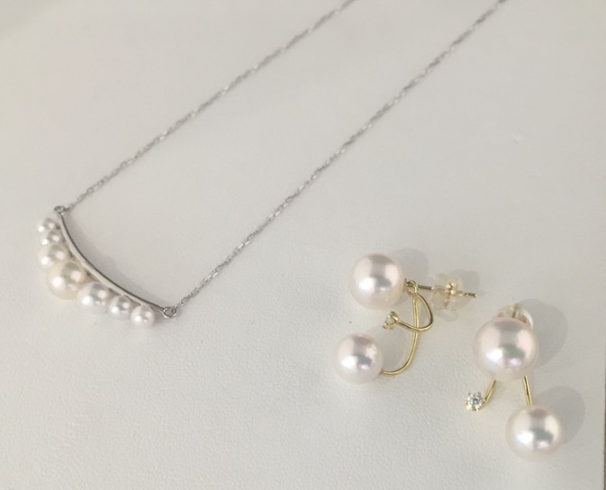 純真な光の結晶 2016年6月28日 by ijima アコヤ真珠は、日本人にとってパールの原点。純白の光沢は美徳や品格、潔さと強い意志を寡黙に示します。 左側 3〜5mm K18WG 84,240円 右側 6.5〜8mm K18 71,280円