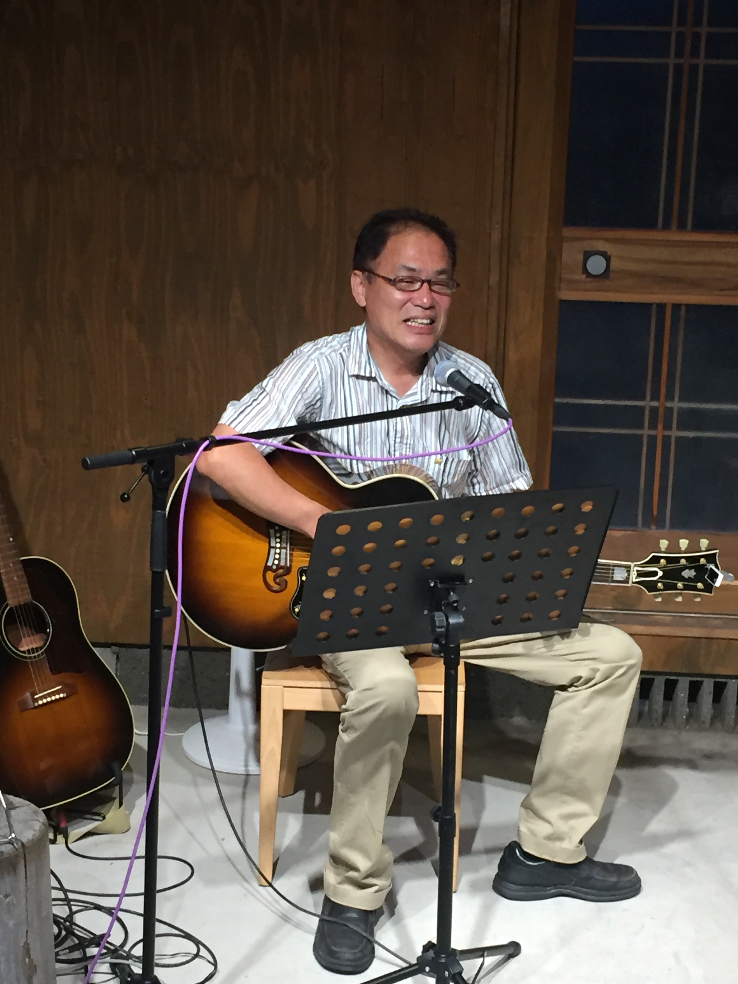 直島 2016年8月8日 by ijima 瀬戸芸開催中の直島に先日、遊びに行ってまいりました。町長主催のライブ開催ということで、楽しく島の方たちと唄ってきました。 写真は、直島町長(^^) 拓郎好きみたいです。