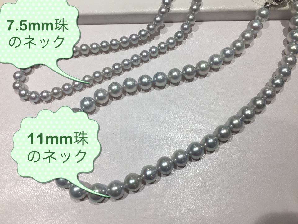 緊急告知!(◎_◎;) 2017年3月8日 by ijima アコヤ真珠は、通常、 9.5mmが最大のサイズです。年間に数本だけ、10mmを超える大珠ができます。その一本を当店が入手いたしました。さらに今回のネックレスは、ナチュラル(自然の無調色)ブルー珠です。 通常良く売れている写真の7.5mmのネックレスは人工的にコバルトで着色しています。 大きさも比較してみてください。 価格は、現品限り ズバリ 税込 100万円 です。 早いもの勝ち!