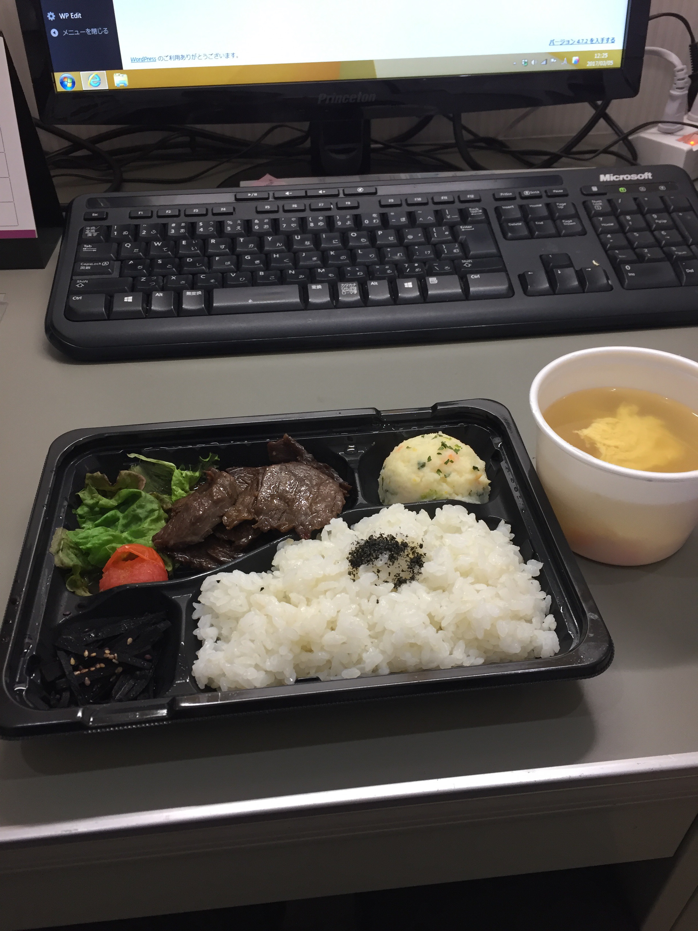 お弁当(丸まるマルシェ) 2017年3月21日 by ijima 店内事務所で事務作業の日は、一階にある「丸まるマルシェ」の弁当を買いに行きます。555円で、スープ付き 税込価格は、600円で1円のお釣り。 毎日、いろんな種類のお弁当があり、選ぶのも楽しい。ローストビーフやハンバーグにヘルシーなお魚弁当も。 美味いから食べてんまい。