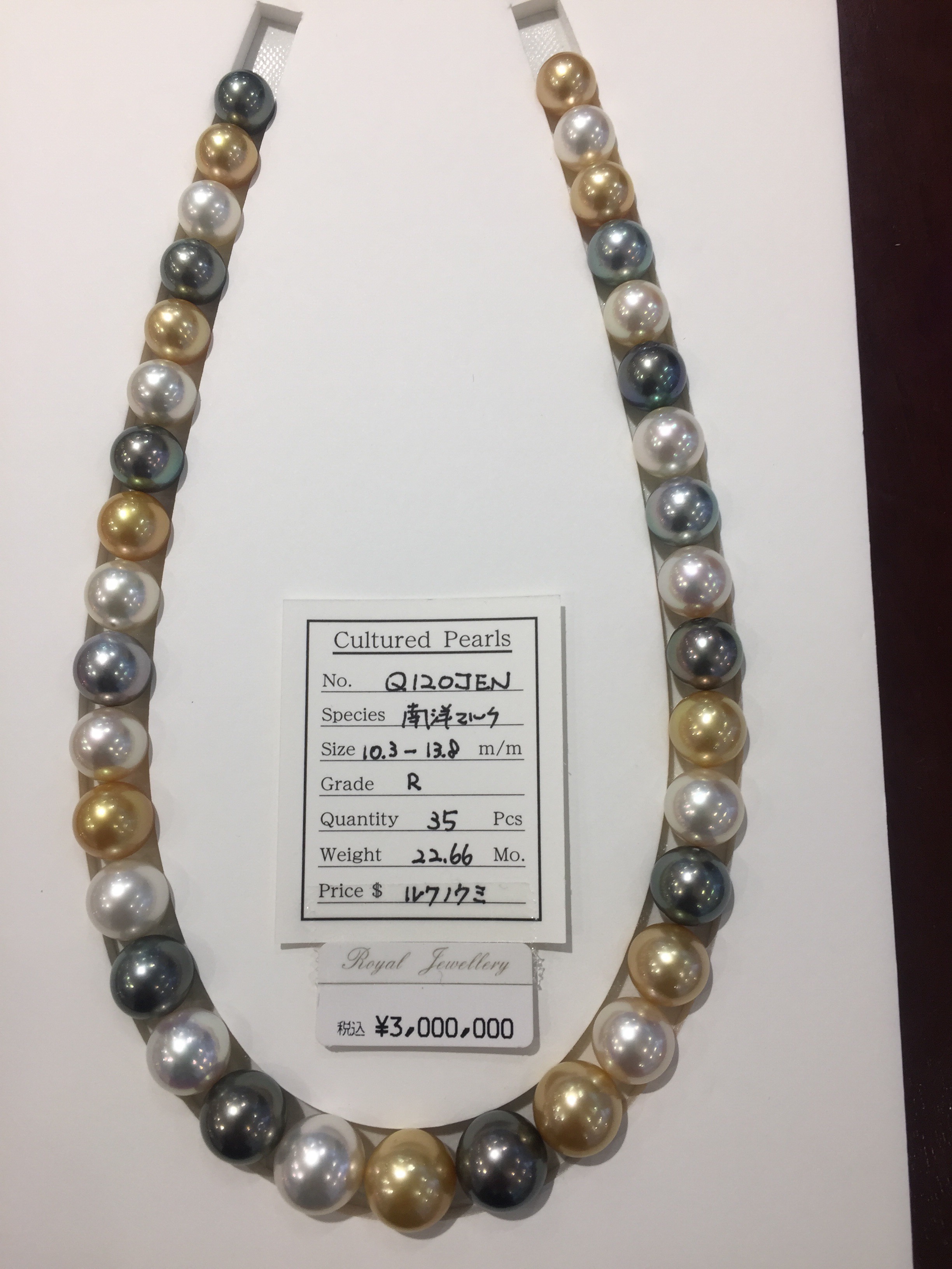 マルチパールネックレス 2017年5月6日 by ijima マルチパールネックレスは、カラーバランスが重要です。金と白を基調に黒(グレー)を散らすように配置。もちろん購入されるお客様のご意見も尊重しながら。 そんなわけで、無穴の最高品質のパールで色合わせが完了いたしました。 製作期間、半年くらい(-_-;) お客様も大満足です。