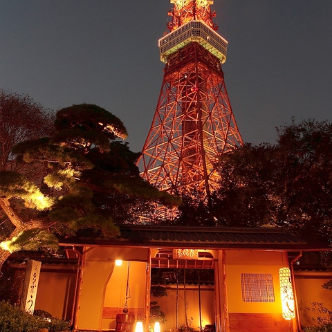 昨夜は、東京 芝にある「うかい亭 芝」に行ってきました。東京タワーの真下にあるので、入口を抜けて少し中庭を歩くと写真のように東京タワーがお庭から空に向かって伸びています。