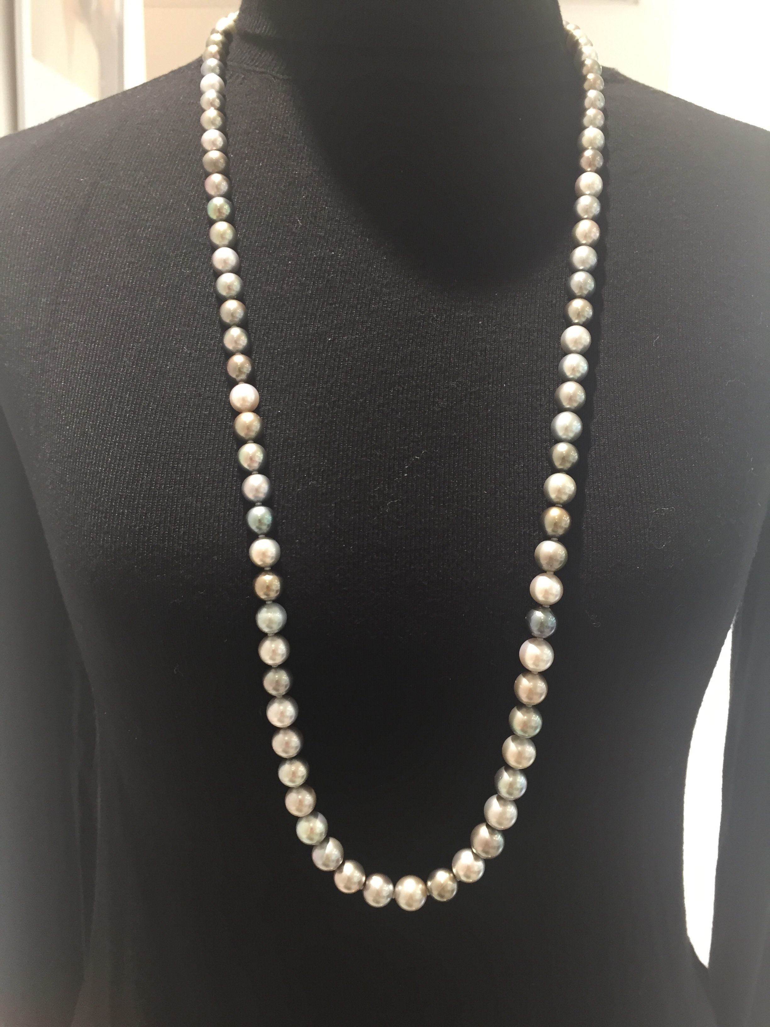 マルチカラーパール 2017年12月26日 by ijima 南洋パールのグレーを基調にカラーをグラデーションに並べてみました。 手にとって見ると、さらに美しい珠です。 こちらの作品も試作品で、厳選して組みました。在庫処分価格でご奉仕いたします。 200,000円です。一本しかありません。