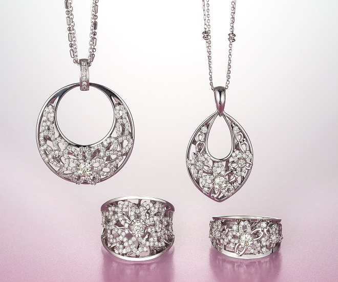 さくらダイヤモンド紹介② 2018年1月19日 by ijima さくらダイヤモンドから「八重桜シリーズ」ボリュームゾーンのデザインですが、透かし細工になっていますので、繊細でエレガント感を保っています。ペンダントは少し長めのチェーンでラフにお使いいただきたい。リングは、お着物にも似合うので、訪問着におしとやかに合わせていただきたいです。