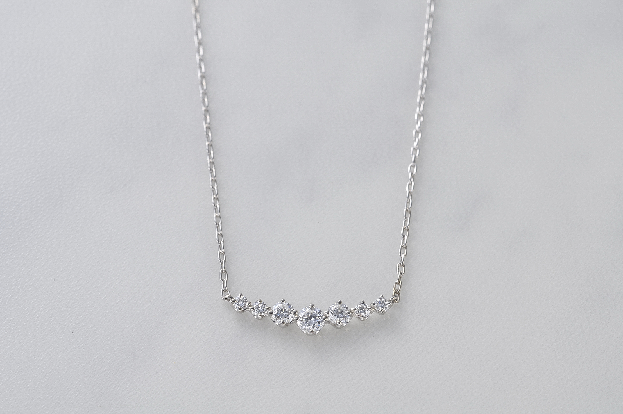 大人のワンランクアップ・・・ 2015年5月15日 by ijima Pt製 ダイヤモンドネックレス 7石使用して、0.30ct使用 チェーンの留め具の左右両方にアジャスターがついていて、短くしたり長くしたりしたときにダイヤモンドのセンターがずれません。 ワンランク上の大人のジュエリーです。 価格は、90,000円税込