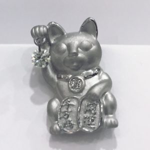 幸運の招き猫 2018年2月17日 by ijima K18WG 招き猫 ブローチのご紹介です(^^) ブローチ針を倒すとペンダントとしても使えるので、男性なら、ジャケットの襟に、女性なら、チェーンを通してネックレスに。 招き猫の右手には。0.11ctのダイヤモンドが揺れるように留まっています。 現品限り特別価格で販売します。 税込価格 50,000円