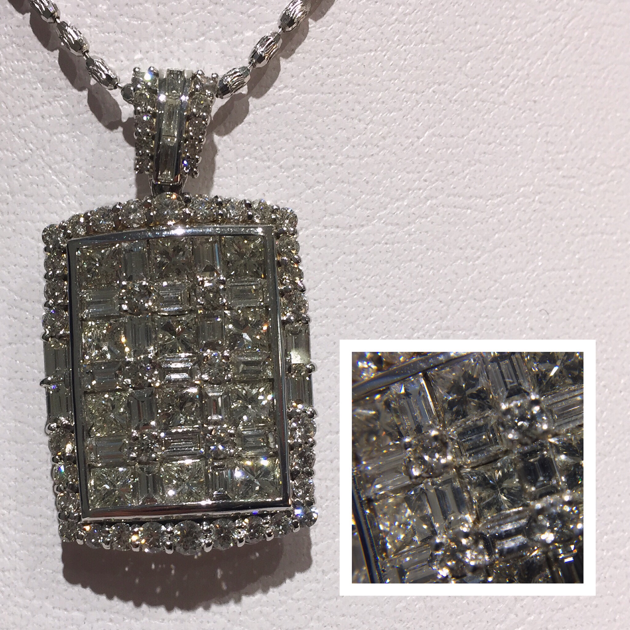 角石 ダイヤペンダント 2018年2月28日 by ijima 洗練された角石(エメラルドカット)のダイヤモンドを繊細に上品な感性と特殊な高度な技術でセッティングしたペンダント。 決算特価で税込100万円