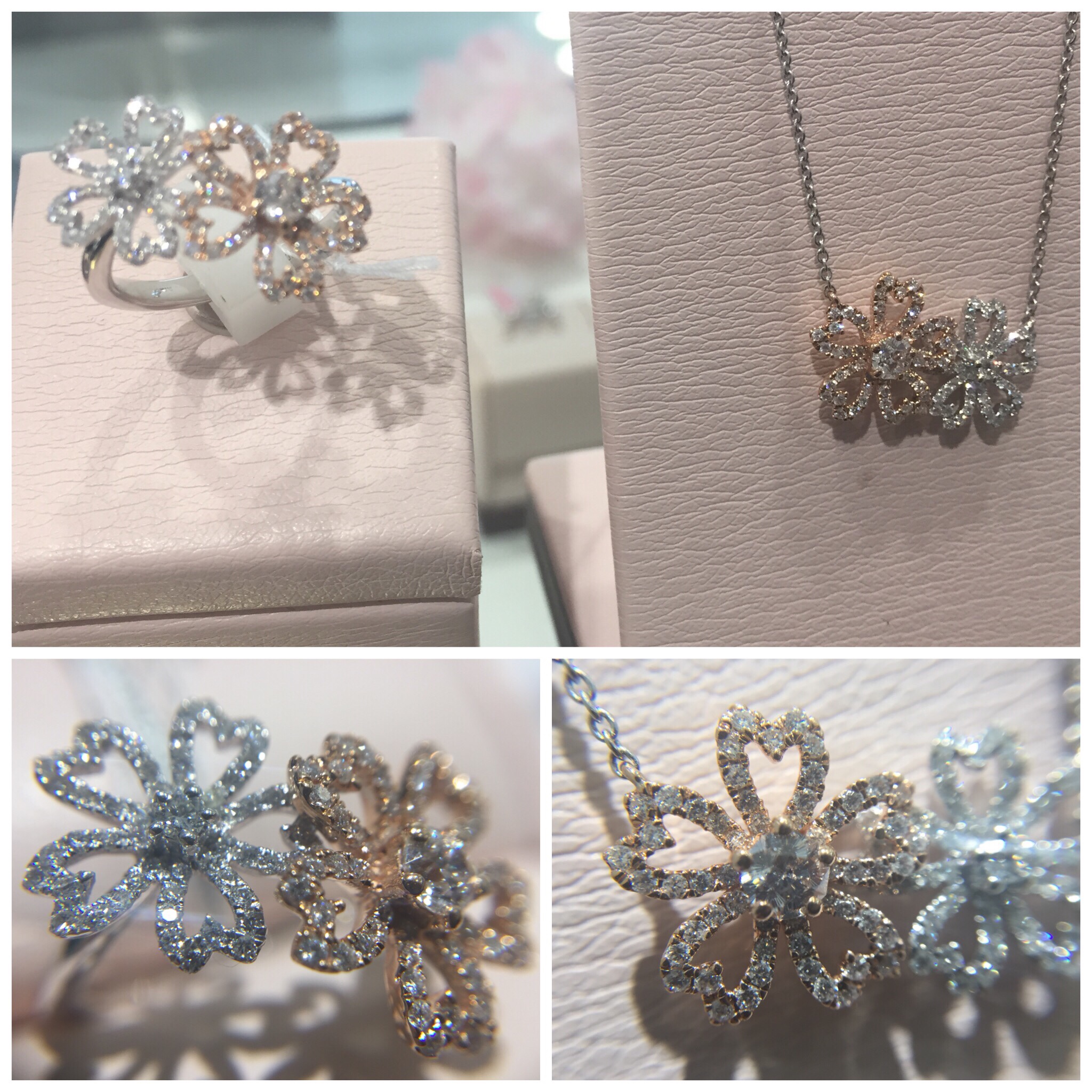 さくらダイヤモンド新作❷ 2018年3月26日 by ijima 開花に併せて、さくら花弁をモチーフにしたさくらダイヤモンドのリングとペンダント。 イエローゴールドとホワイトゴールドの花弁がそれぞれに際立っていて相性がいい。 リング、ペンダント共に¥399,000