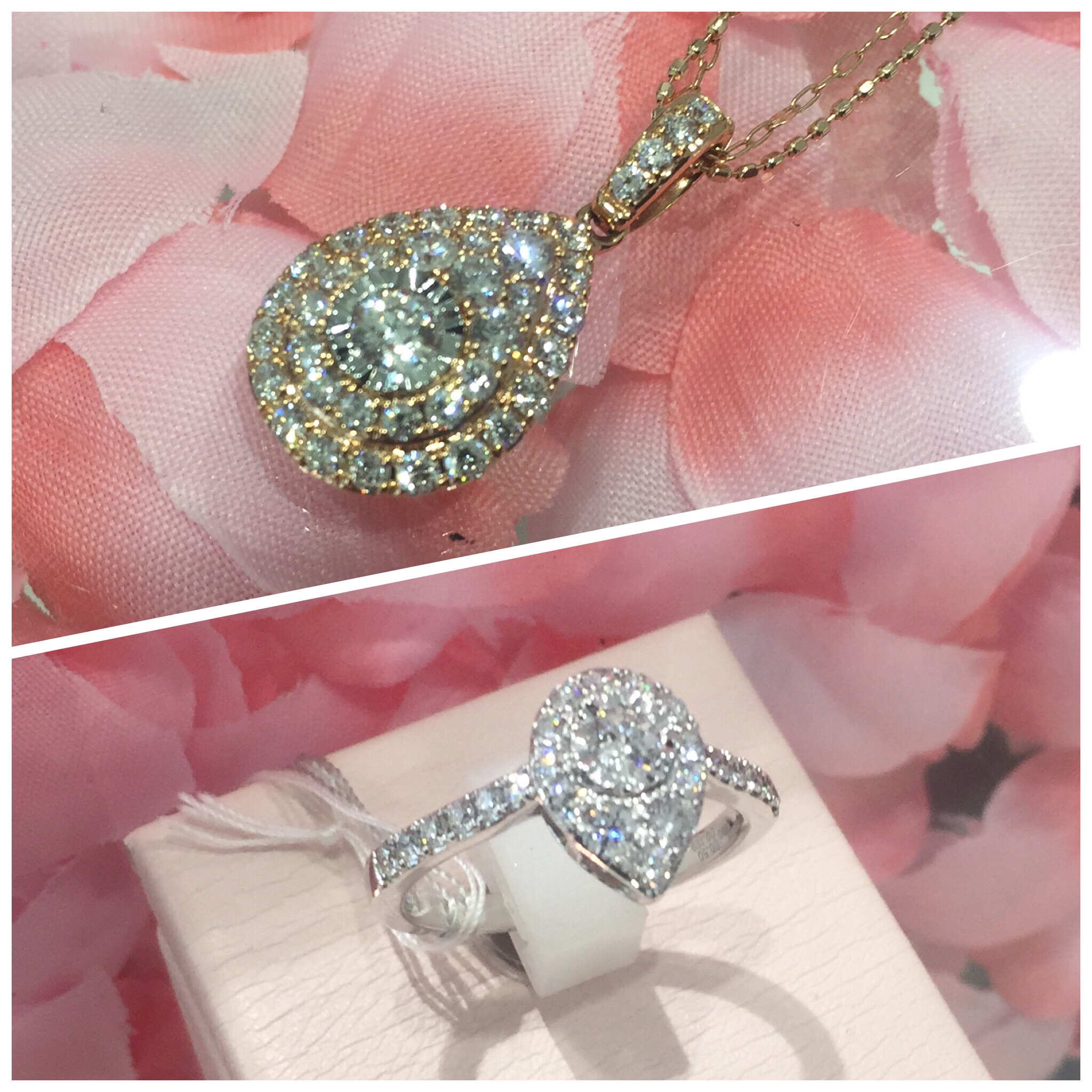 一見するとペアシェイプ型(洋梨型)に見えるのですが、中心には「さくらダイヤモンド」がセッティングされています。