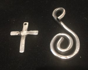 1本の針金から二つのペンダントが出来上がりました。クロスのペンダントは、彼女ができたらプレゼントしてください。骨まで繋いでくれるラッキー針金ですから・・・( ´艸`)ムププ