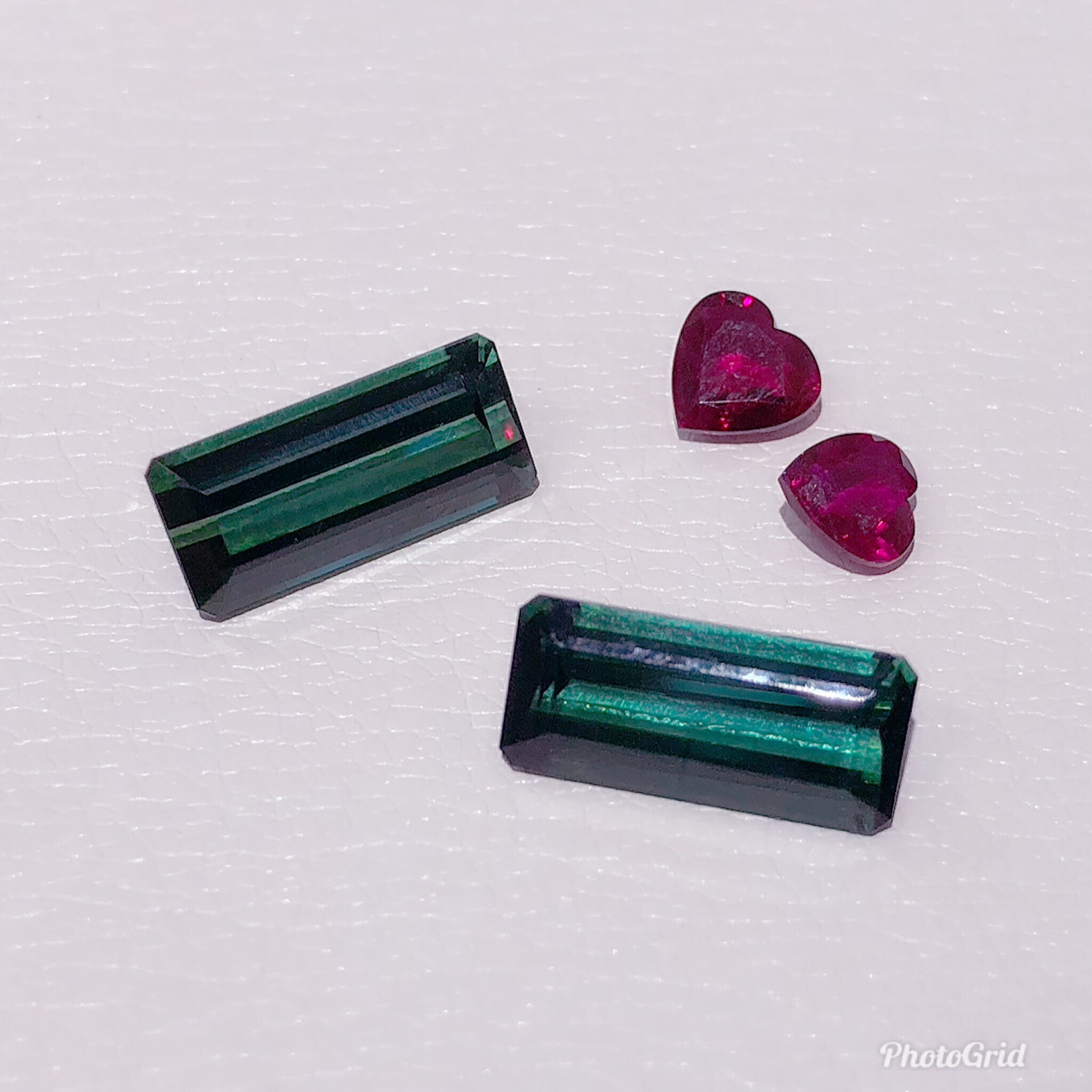 左のグリーントルマリンは、2ピースで6.43ct、右のハートルビーも、2ピースで1.25ct(^^)