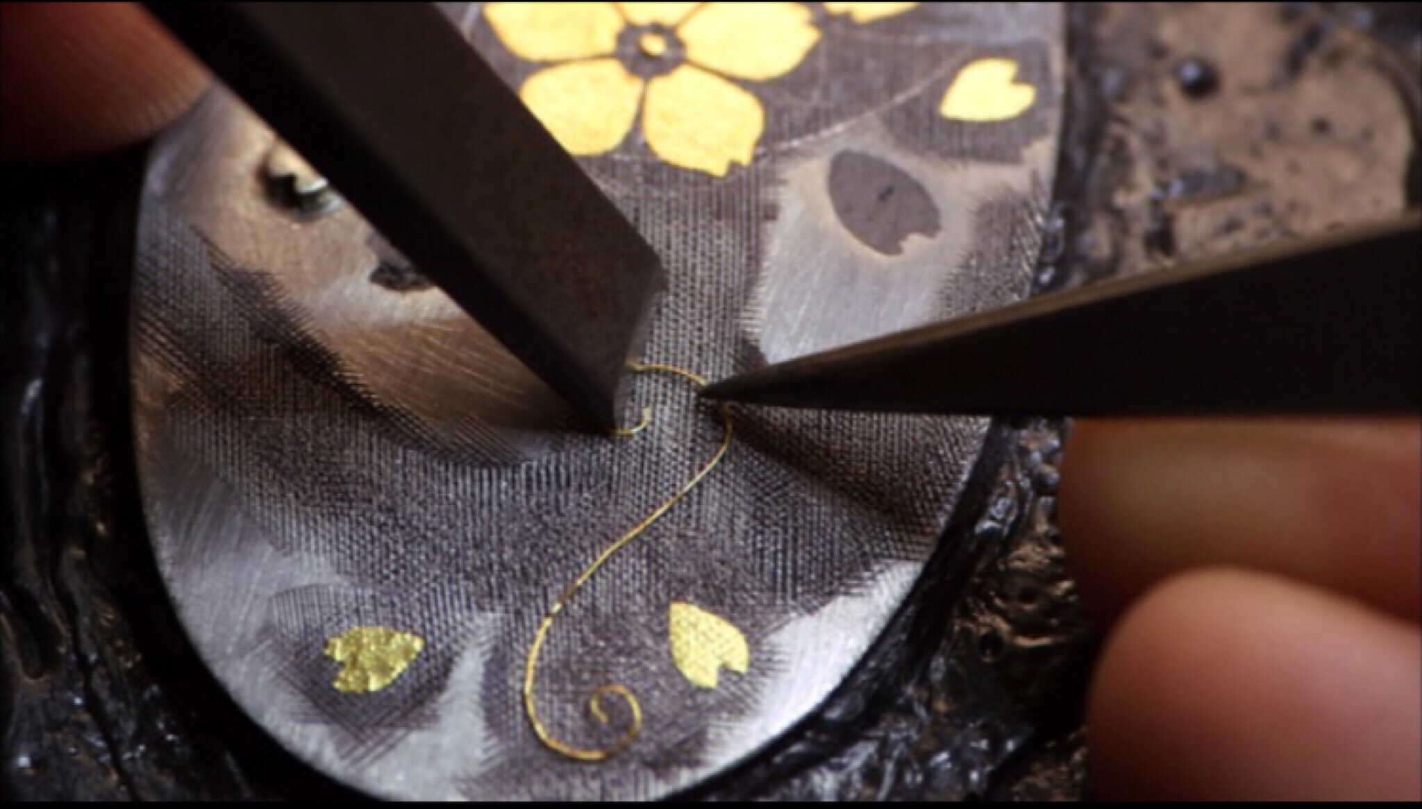 象嵌 2018年6月2日 by ijima 金属の細い線や小さな板を美しく磨きあげた面に、それとコントラストの効いた金属などをはめ込み、模様や絵柄を施す伝統技法を象嵌といいます。下地金属には、タガネでへこみや溝を掘り出して、そこに別の金属をはめ込みます。