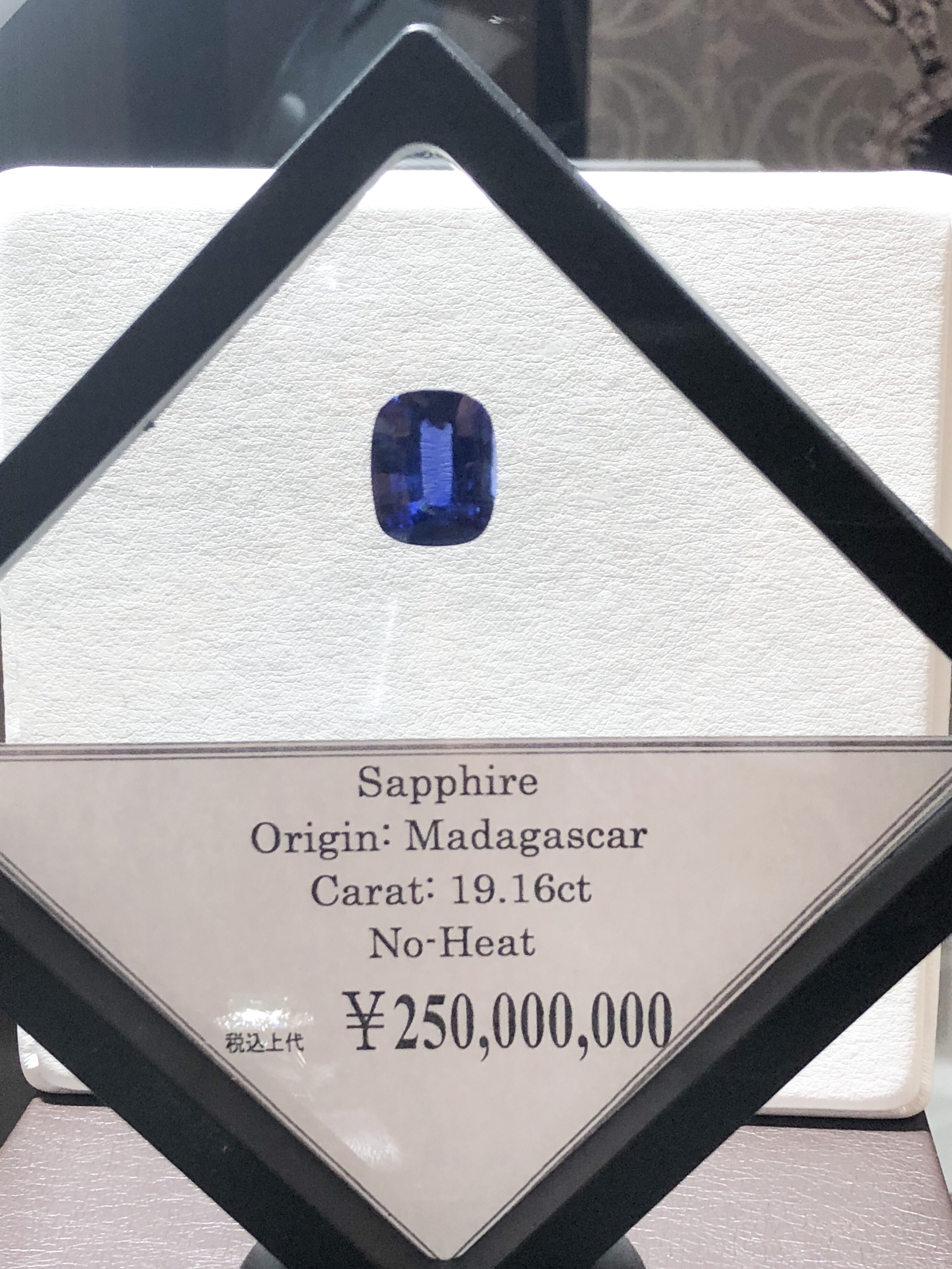 マダガスカル産の非加熱無処理のサファイアです。特徴はなんと言っても19.16ctの大きさです。透明度があり、若干ビロードのような独特の味わいがあります。また、弱い光の下でも、存在感があります。
