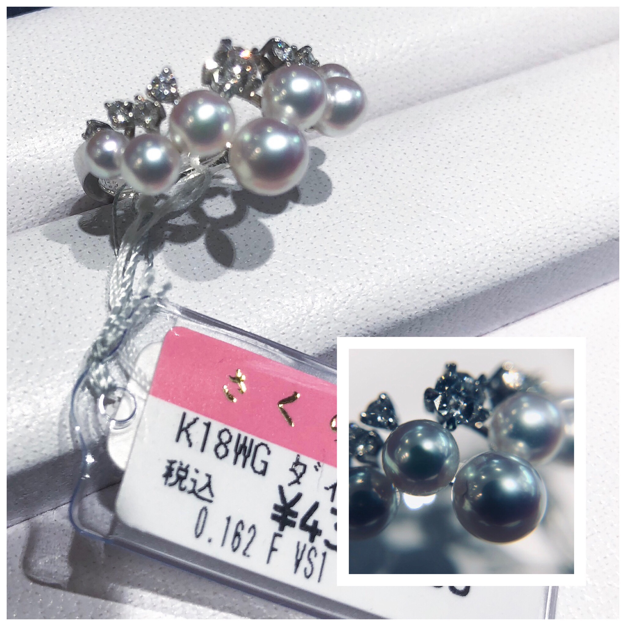 アコヤ真珠リング K18WG ダイヤ入り