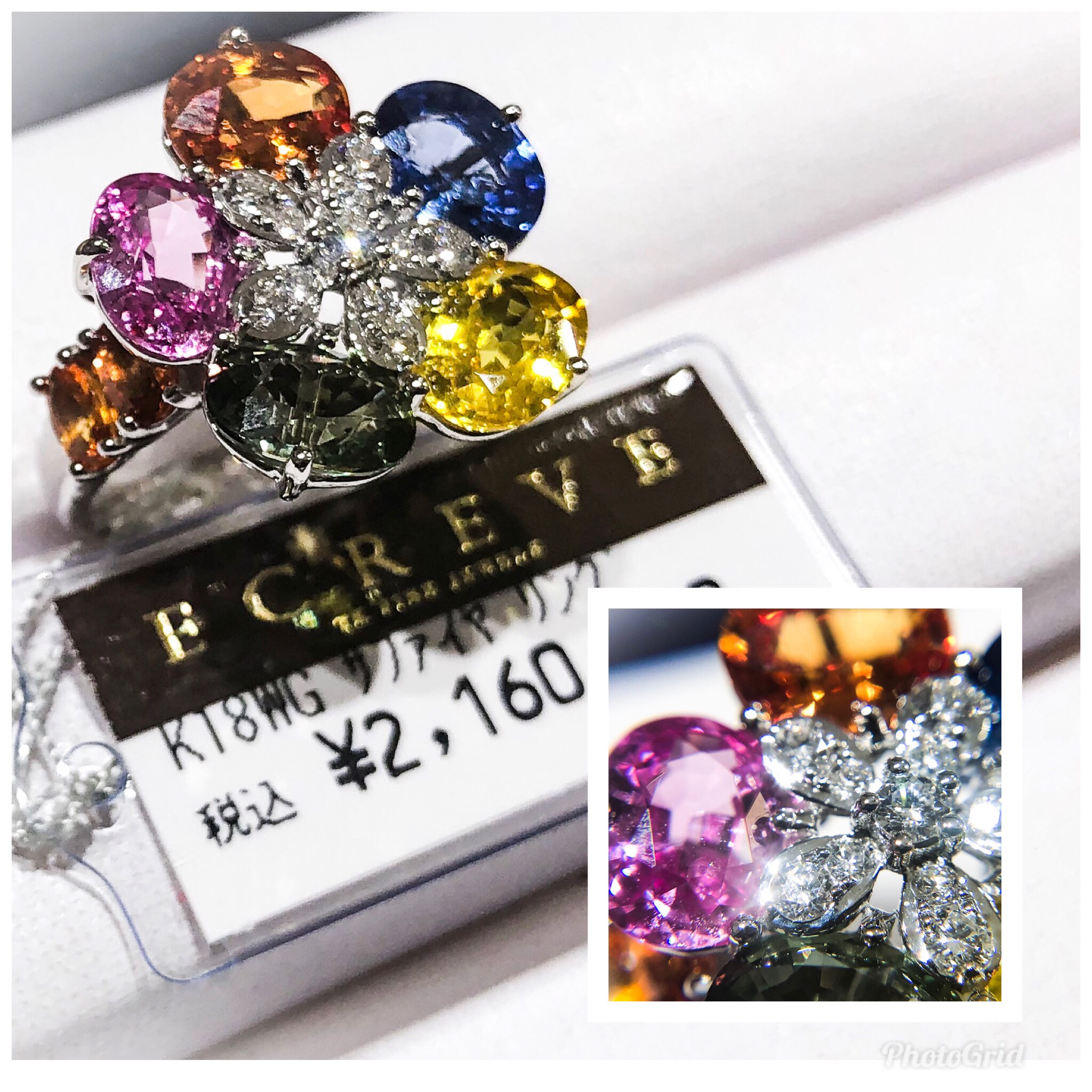 エクレブ新作 2018年12月5日 by ijima マルチカラーサファイアをあつめた、豪華で可愛いリング。大量生産は決してできない逸品です。サファイア 8.90ct ダイヤ 0.30ct 税込 2,160,000円