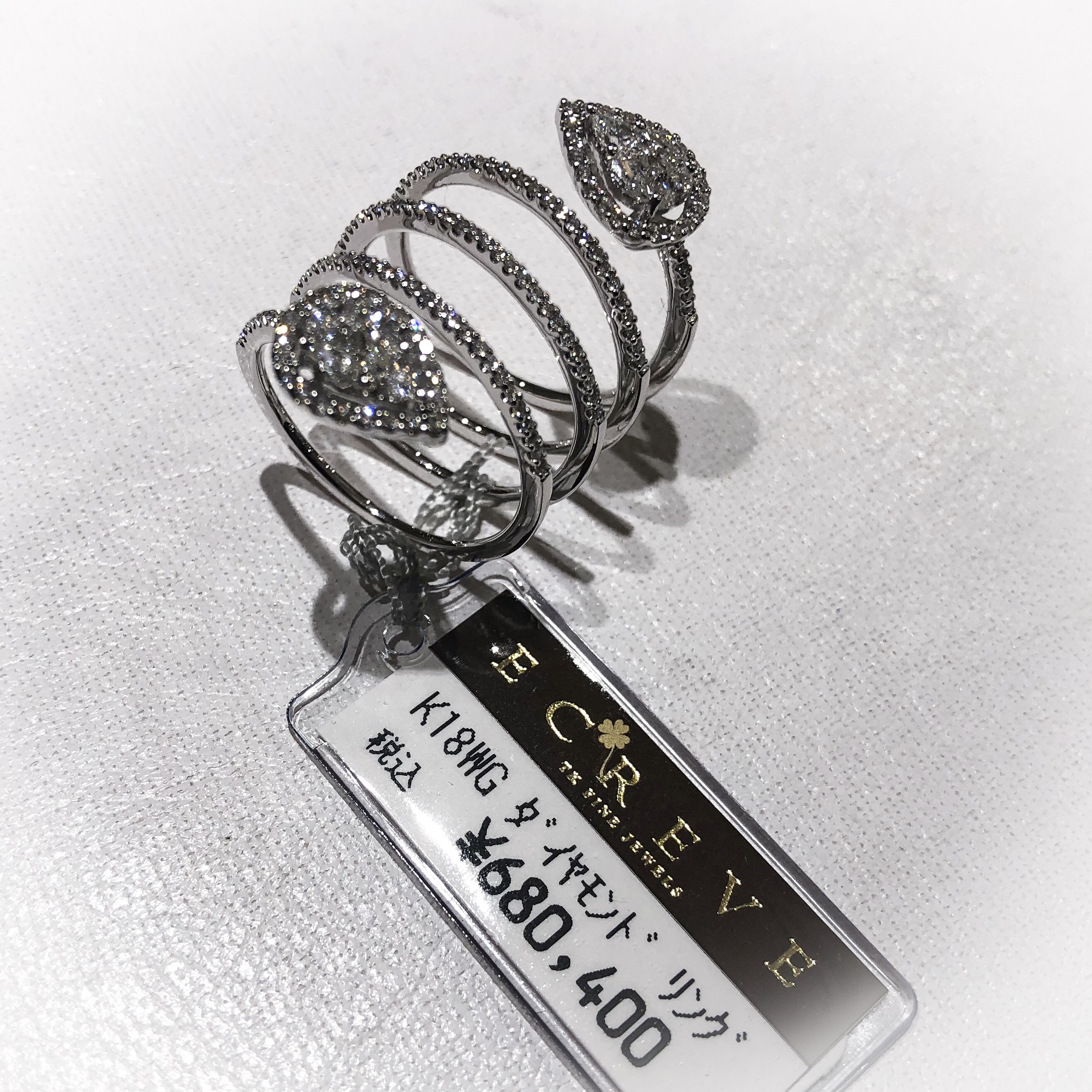 新作 スネークリング 2018年12月7日 by ijima スネーク型リングを地金を限界まで細くして、柔らかく製作しました。細く優しい地金にも、ぎっしりとダイヤモンドを埋めています。 税込 680,400円