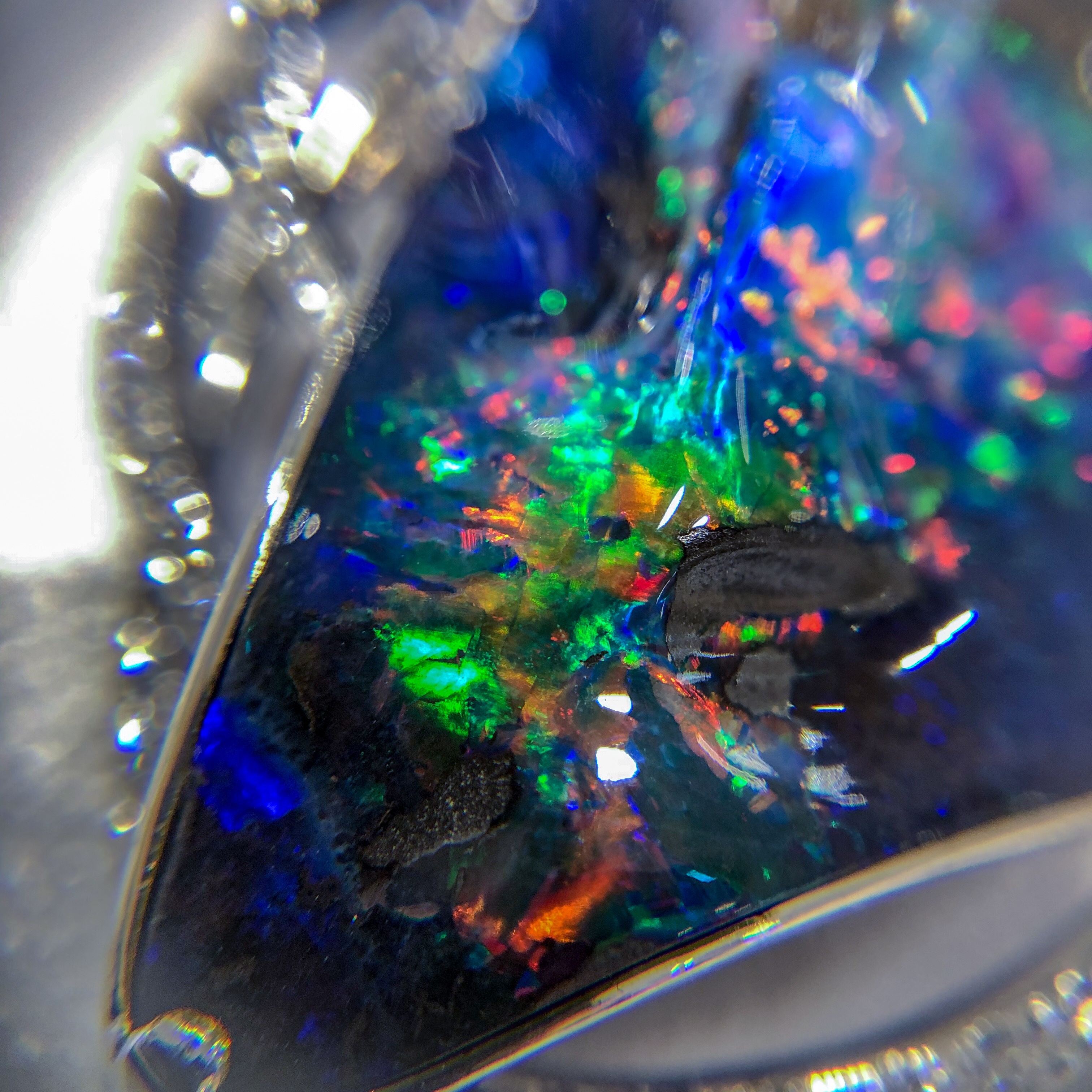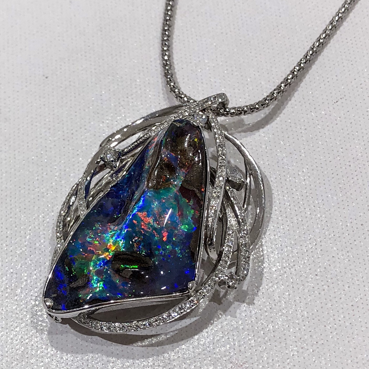 ボルダーオパール② 2019年1月8日 by ijima ボルダーオパールペンダントの一級品だ。 虹を見るような7色が混ざり合い、地色が美しいブルーのために神秘的に見える。 BO 36.20ct D 0.71ct 580万円の逸品です。