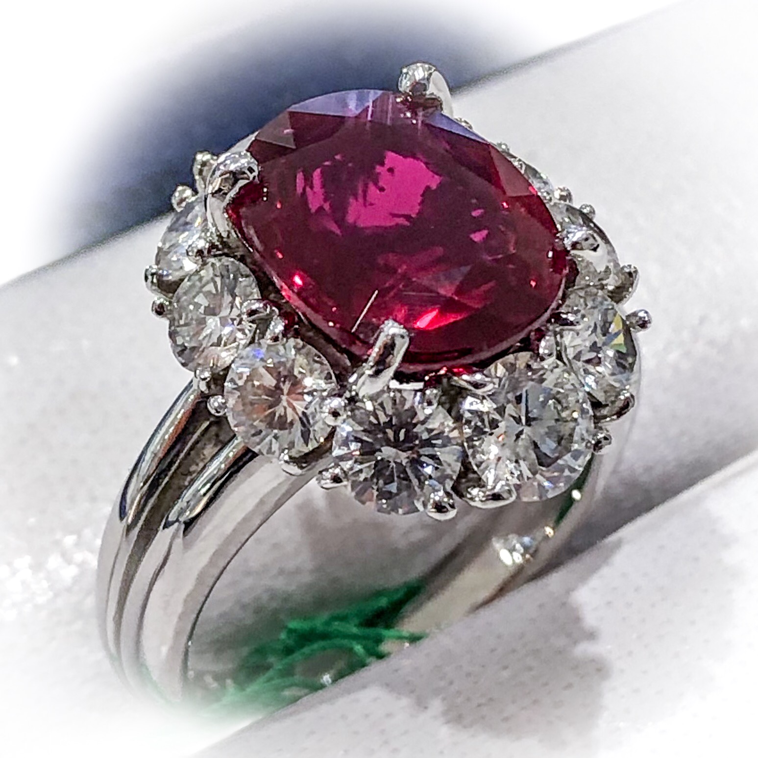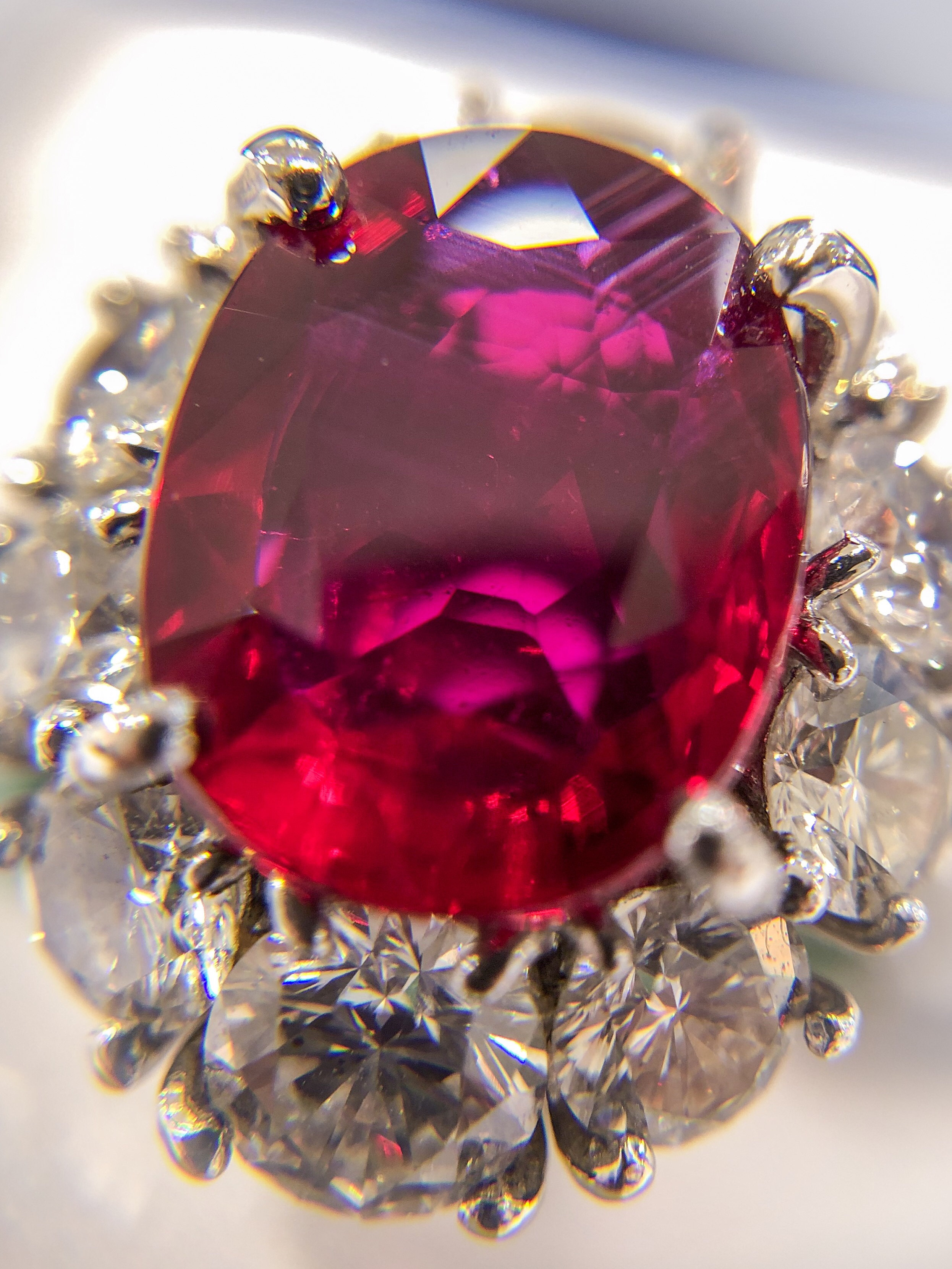 非加熱ルビー 2019年1月14日 by ijima 素晴らしい逸品を紹介しましょう。 ルビー 4.00ct ピジョンブラッド(ハトの血色)で、非加熱の照明書付き。産地はモザンビーク。 これが、ミャンマー産なら、5億円はするだろう。 アフリカ産のルビーも枯渇してきています。 今後の値上がりに期待します。 ダイヤ 2.43ct入り 5000万円