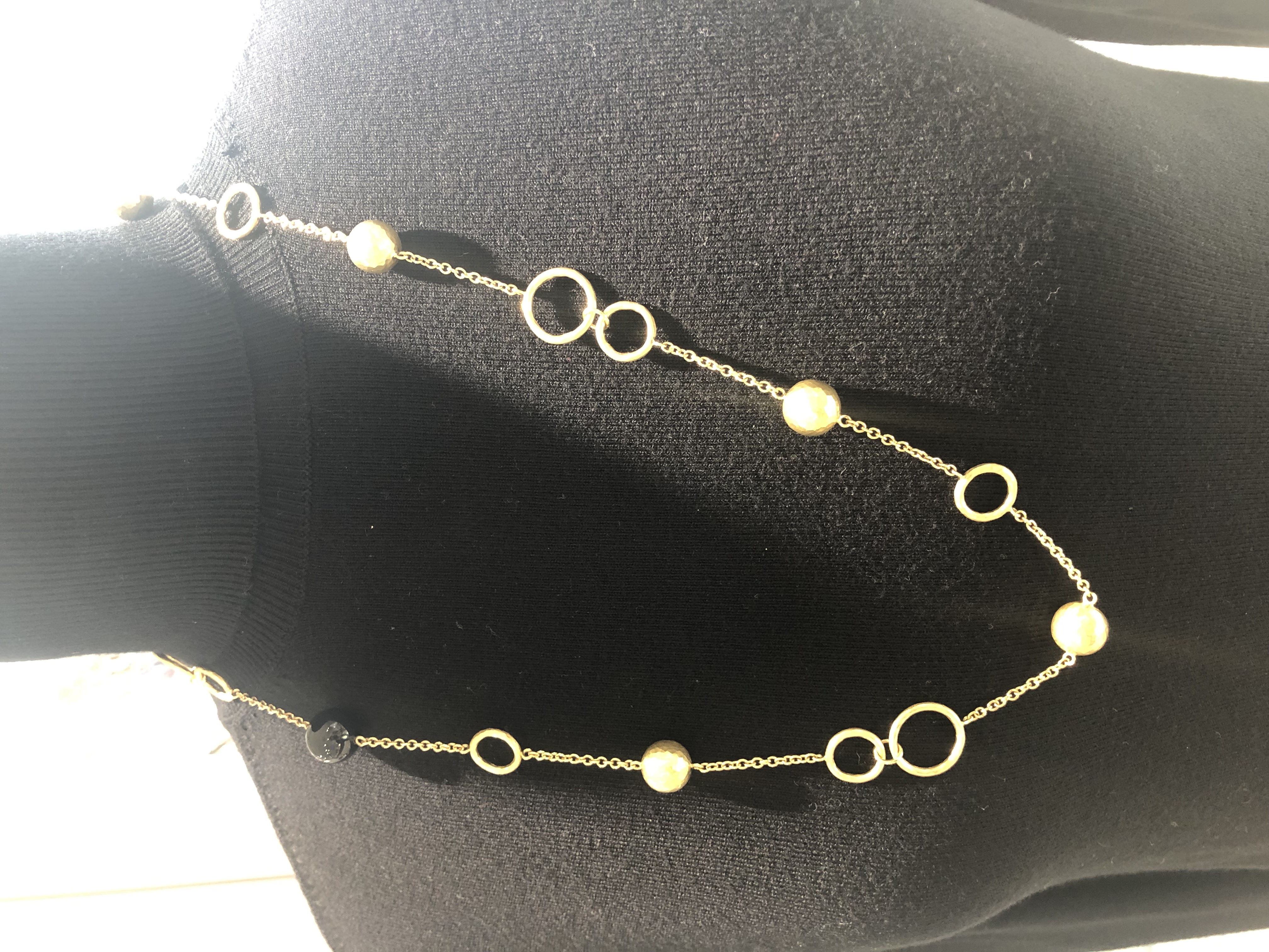 丸型ボールと輪をステーション間隔で繋いだロングネックレス。