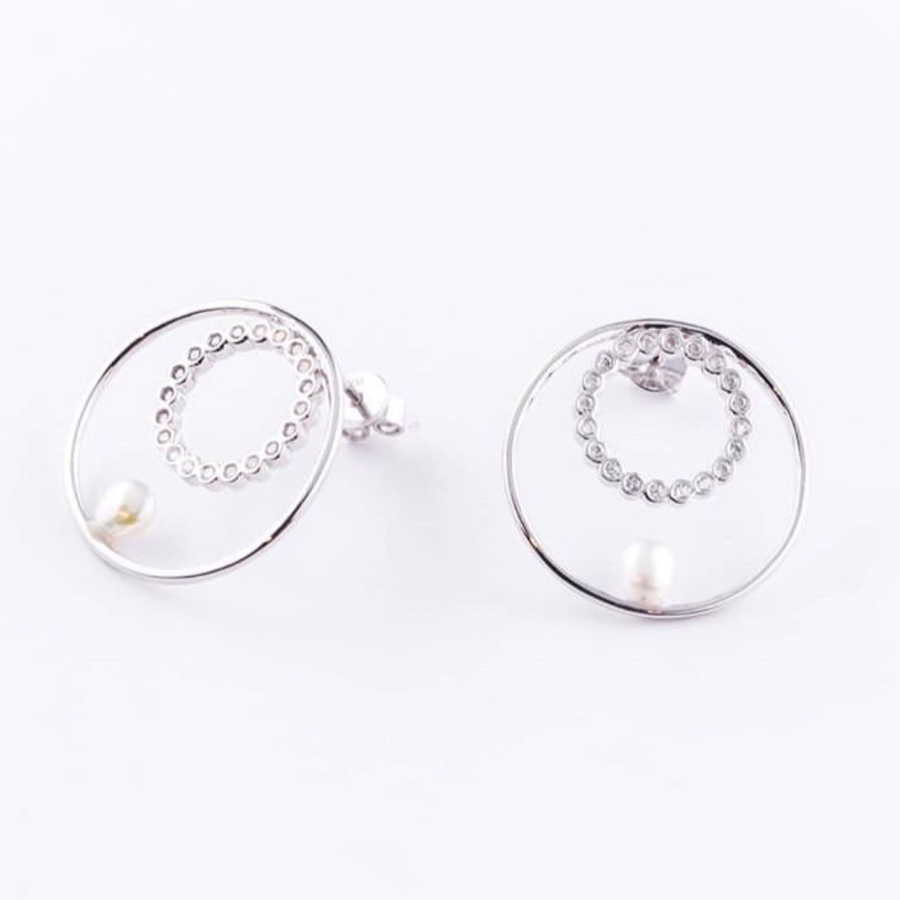 ケシパール(天然無核真珠入り) K18WG ダイヤ入り ピアス 税込 138,000円