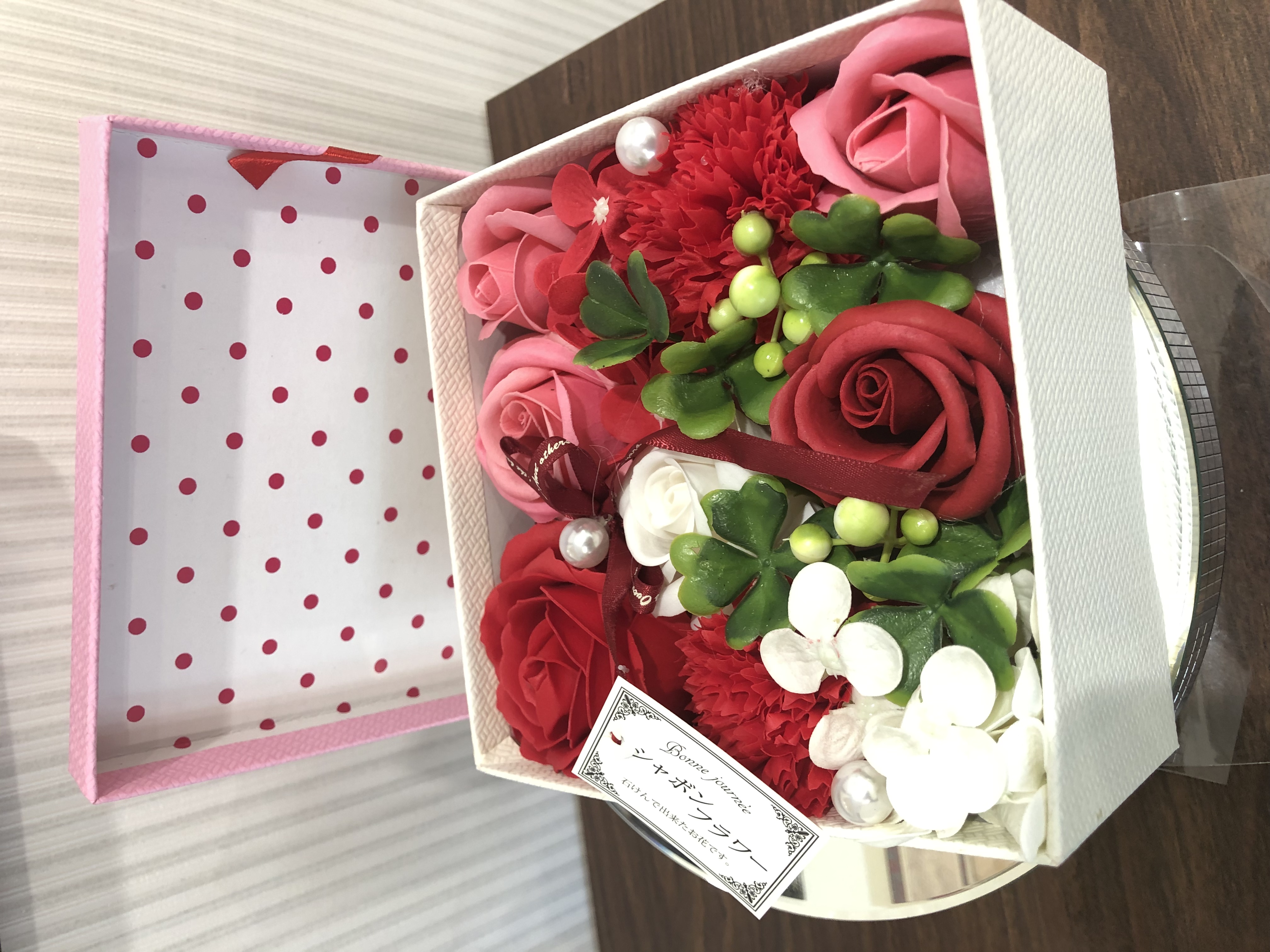 母の日のプレゼント 2019年5月8日 by ijima 母の日のプレゼントに「シャボンフラワー」はいかがでしょうか? 写真の商品は、税込1,800円です。 ラッピング包装もいたします。感謝の手紙を添えて手渡してください。