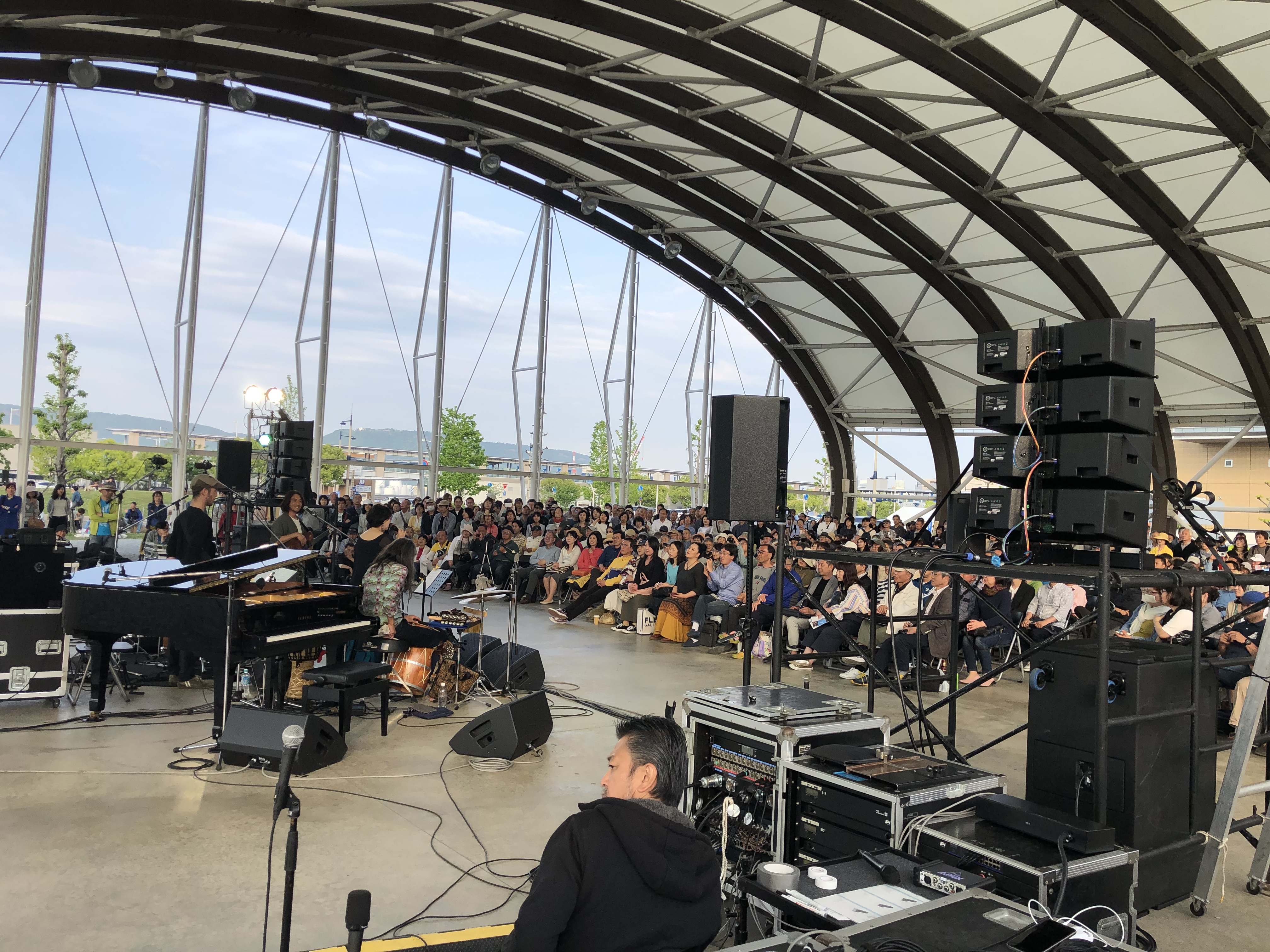 この場所に武道館(体育館?)が建設されることが決まり、これらの大型テントや広場が排除されます。この瀬戸内に吹く気運の風が途切れない事を祈るばかり。