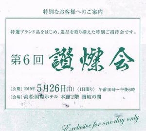 讃燦会のお知らせ 2019年5月18日 by ijima 出品アイテム美術品・宝飾品・時計・メガネ・紳士服・絨毯・呉服・金製品・特選ブランド・婦人服を「天満屋」が総力をあげて気品高い商品群を取り揃え致します。ぜひ、お楽しみください。尚、入場には招待状が必要です。当店にお越しいただければ招待状をお渡しいたします。