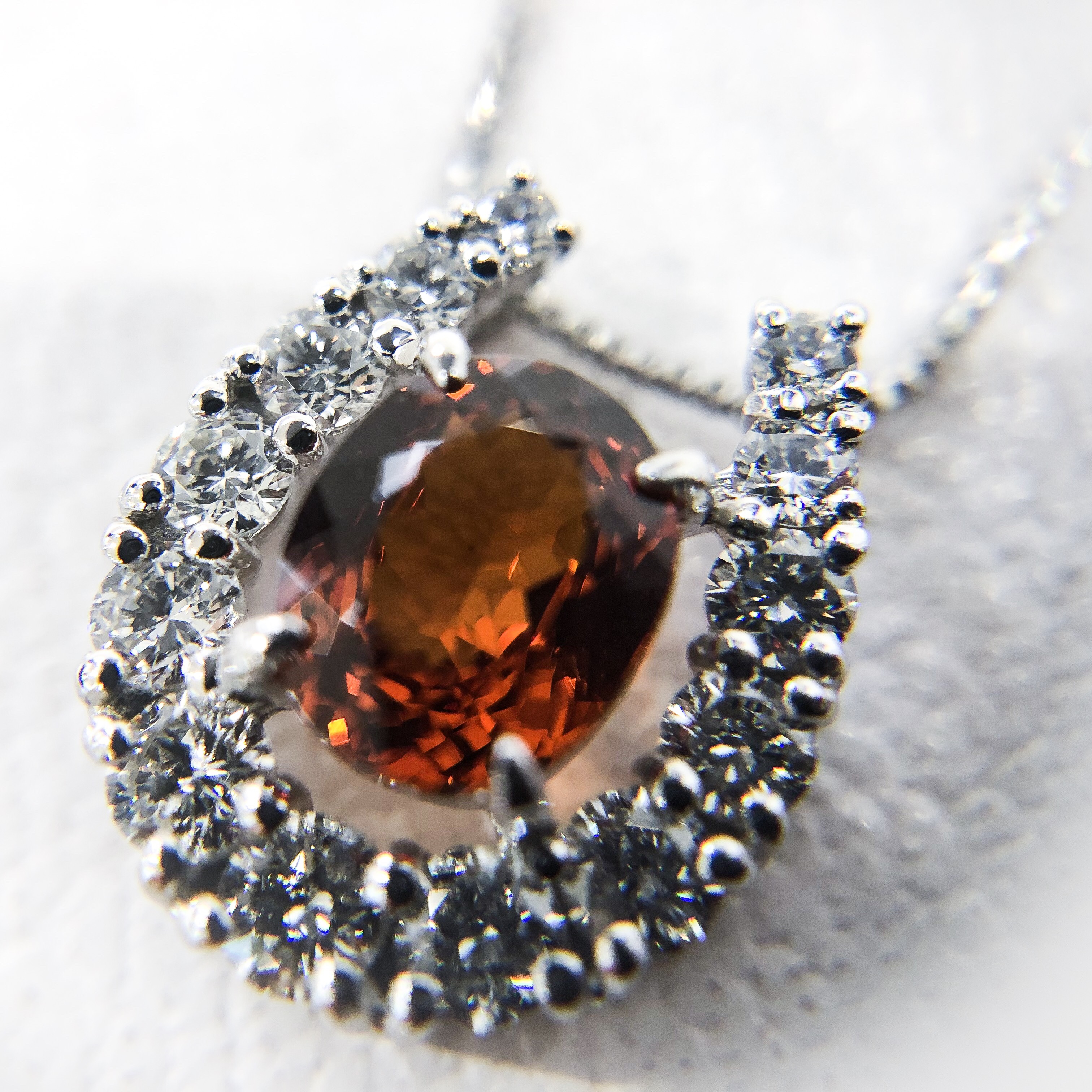 写真のグロッシュラガーネットペンダントは、Pt 0.94ct 0.46ct