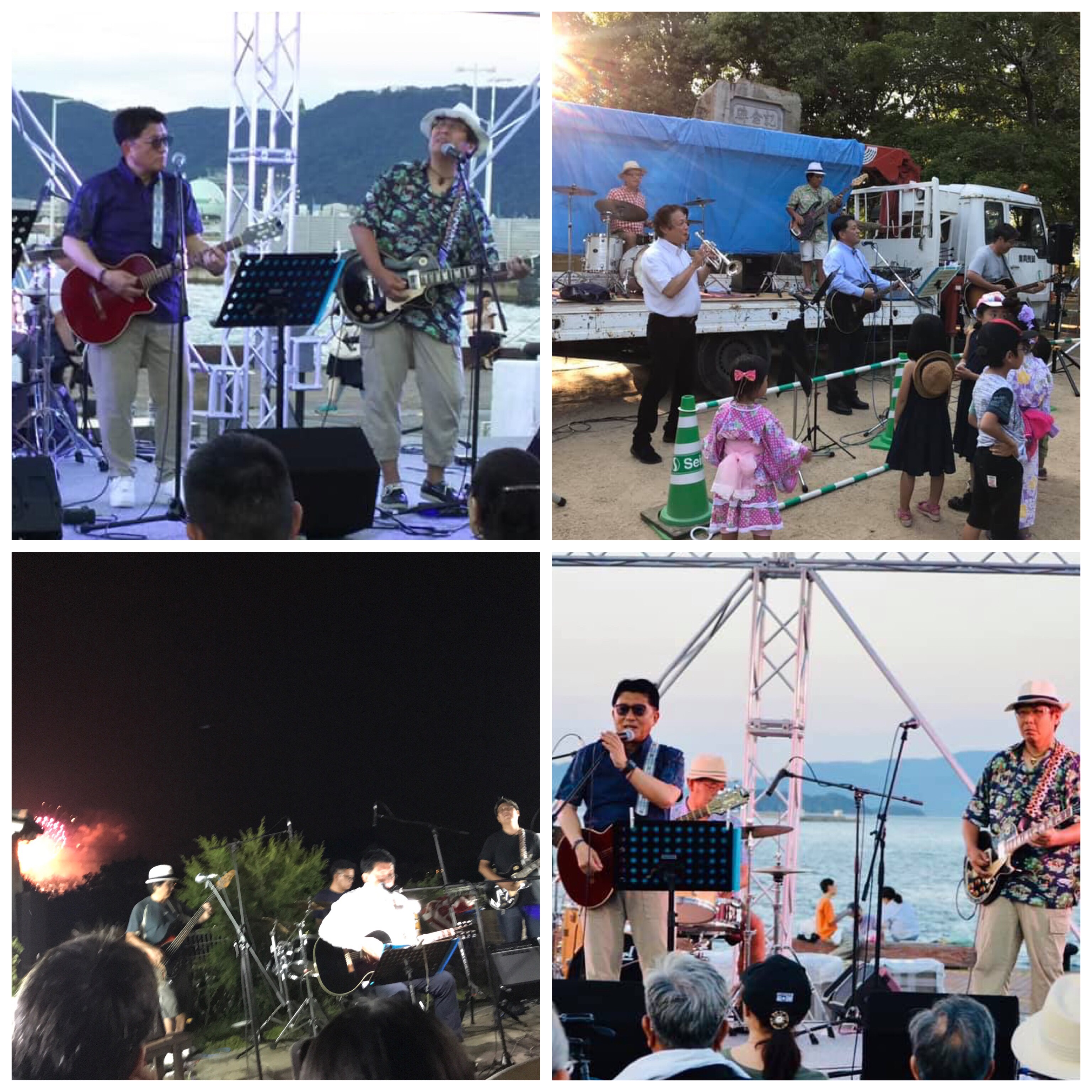 この夏も、たくさんのイベントで演奏させていただきました。毎年恒例のサンポート広場でのサマーフェスティバル、牟礼花火大会に合わせた花火ライブ、春日神社の夏祭りライブと、すべて平井卓也大臣のオリジナルバンド「エレクションズ」で参加しました。