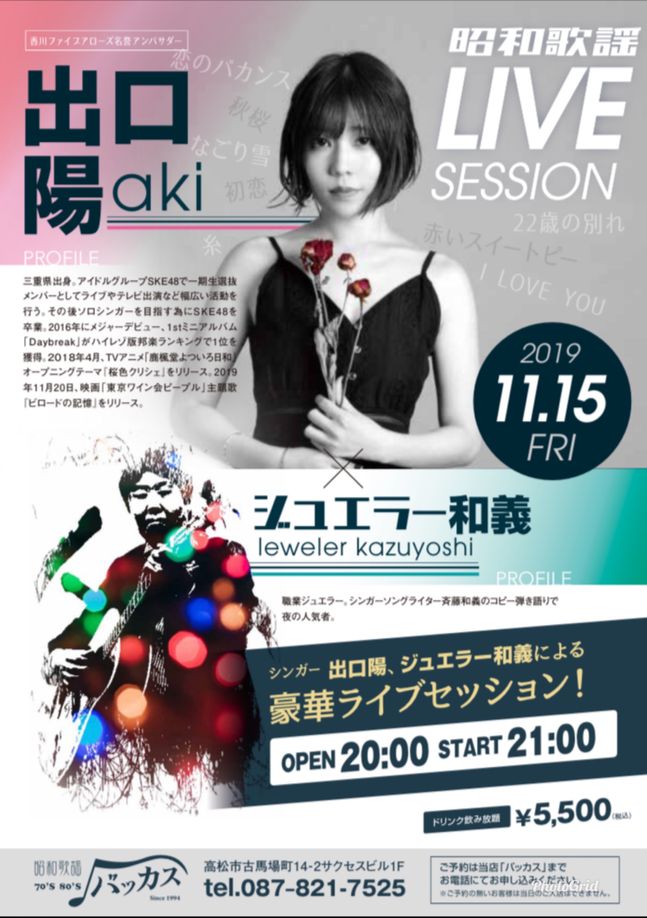元SKE48のメンバーであった「出口陽」さんが、ソロデビューし、高松で唄います。