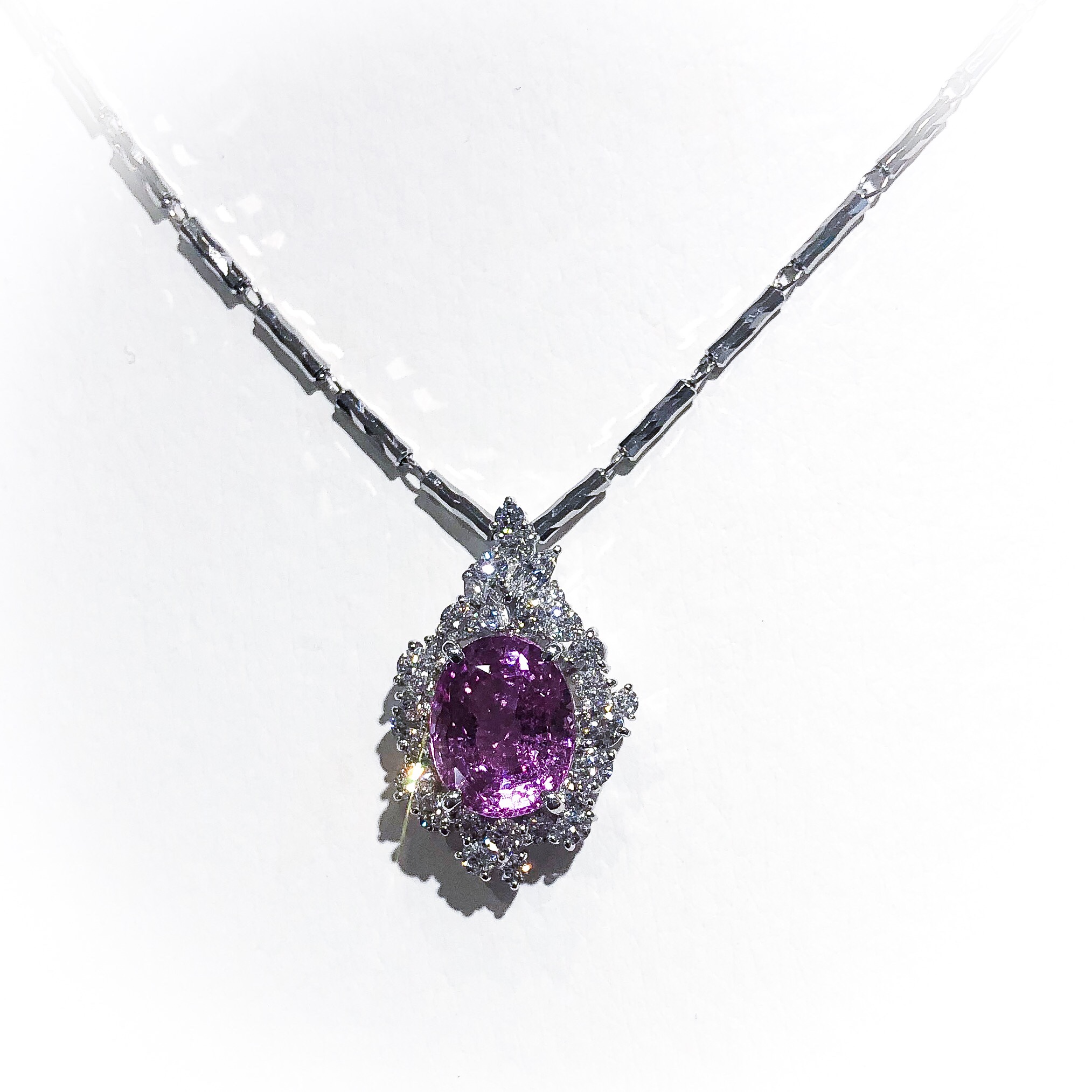 非加熱(NO HEAT)ピンクサファイアで、6.043ct のビックサイズ。パパラチアサファイアという、橙色の高価なサファイアがありますが、ピンク好きの方には、やはりピンクサファイアがおすすめ。写真では、すこし紫が入っているように映りますが、太陽光の元では、テリがある優しいピンク色です。