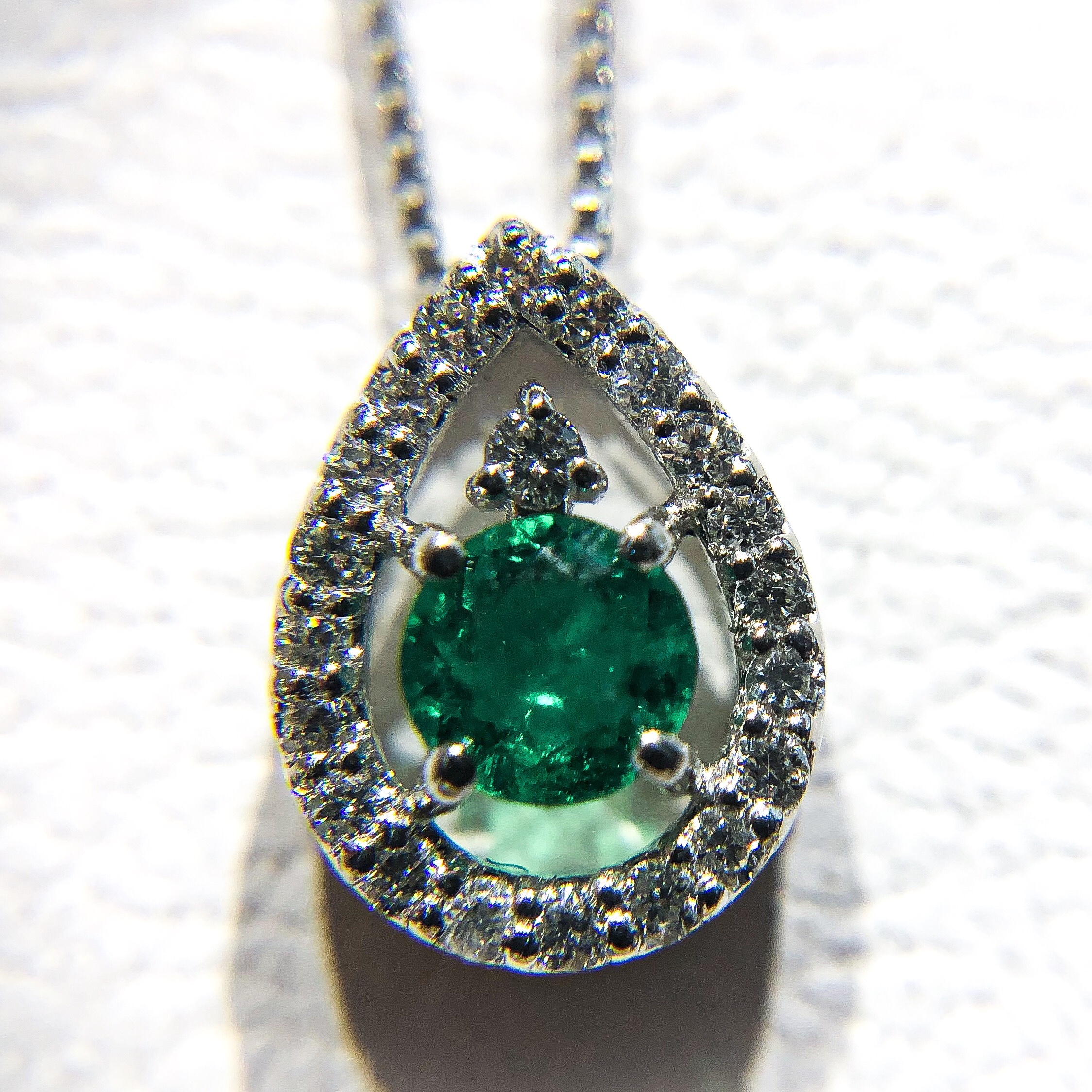 エメラルドペンダント② 2019年12月19日 by ijima PT枠 PTチェーン ブリリアントカット エメラルド ダイヤモンド入りペンダント E/0.18ct D/0.10ct 税込 165,000円