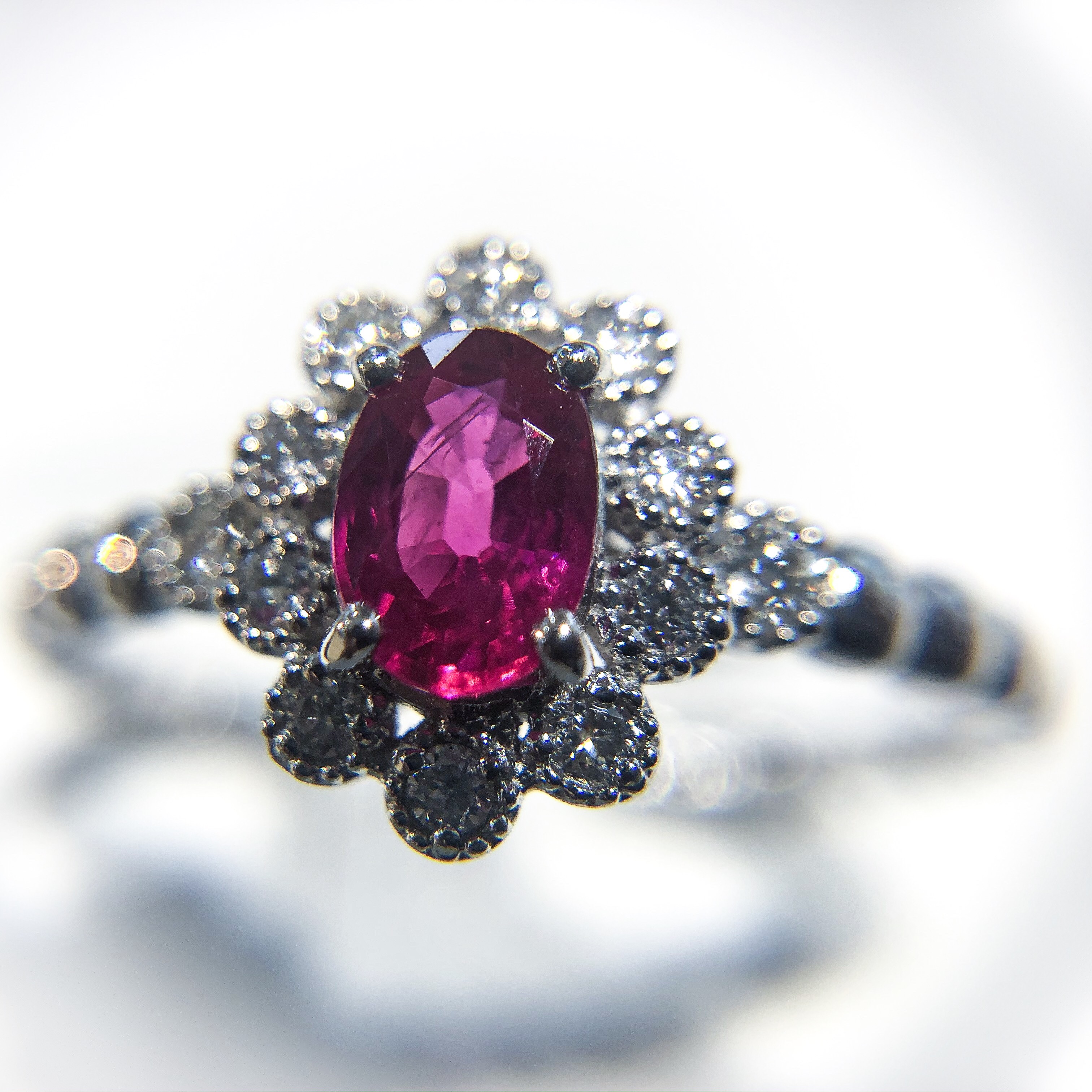 彼女へのプレゼント好適品 ルビーリング PT枠 ダイヤモンド巻き R/0.62ct D/0.13ct 税込 200,000円