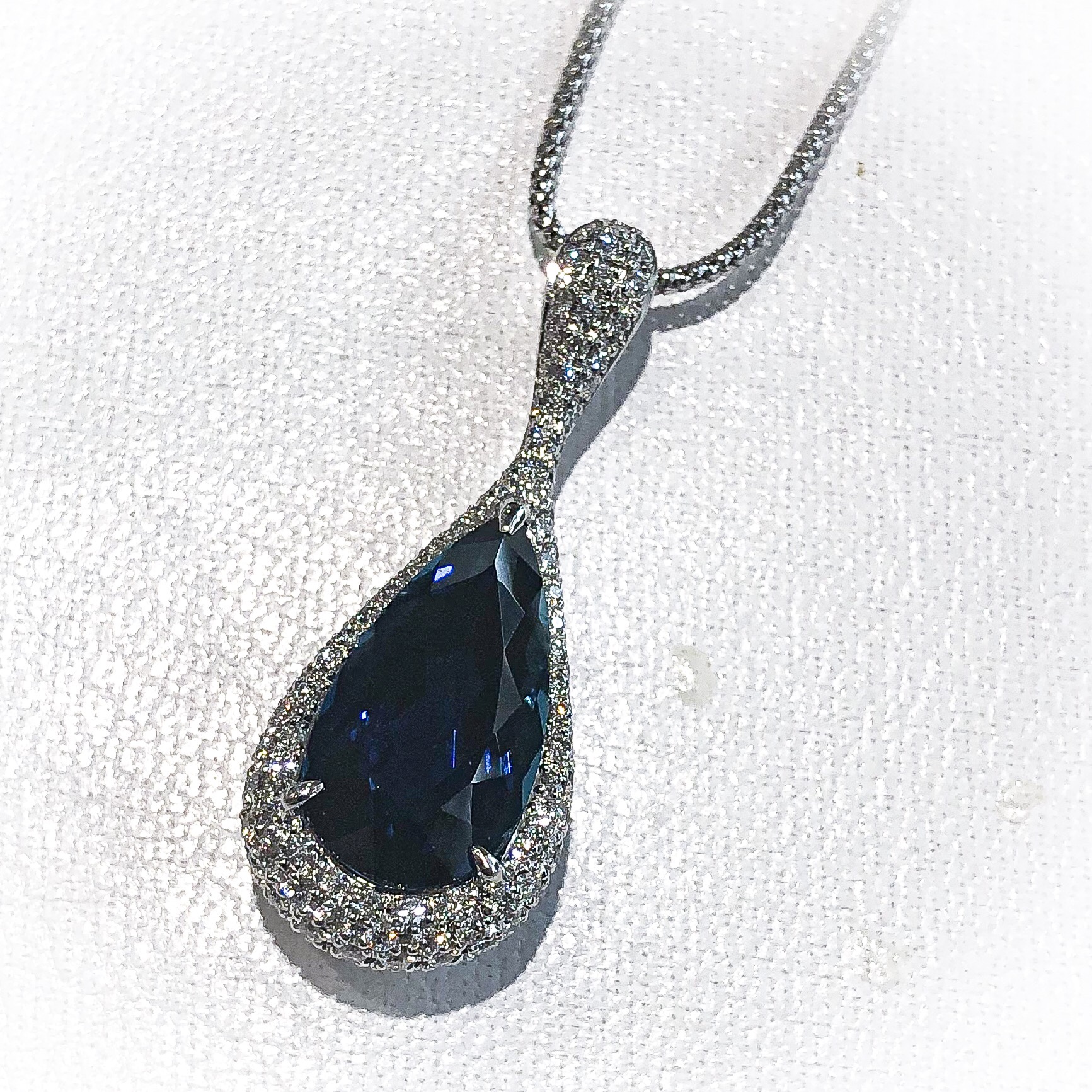 8.022ctは、内包物が無いトルマリンでは非常に希少です。ダイヤモンドの脇石も1.01ct使用しており、枠、チェーンともにPTです。