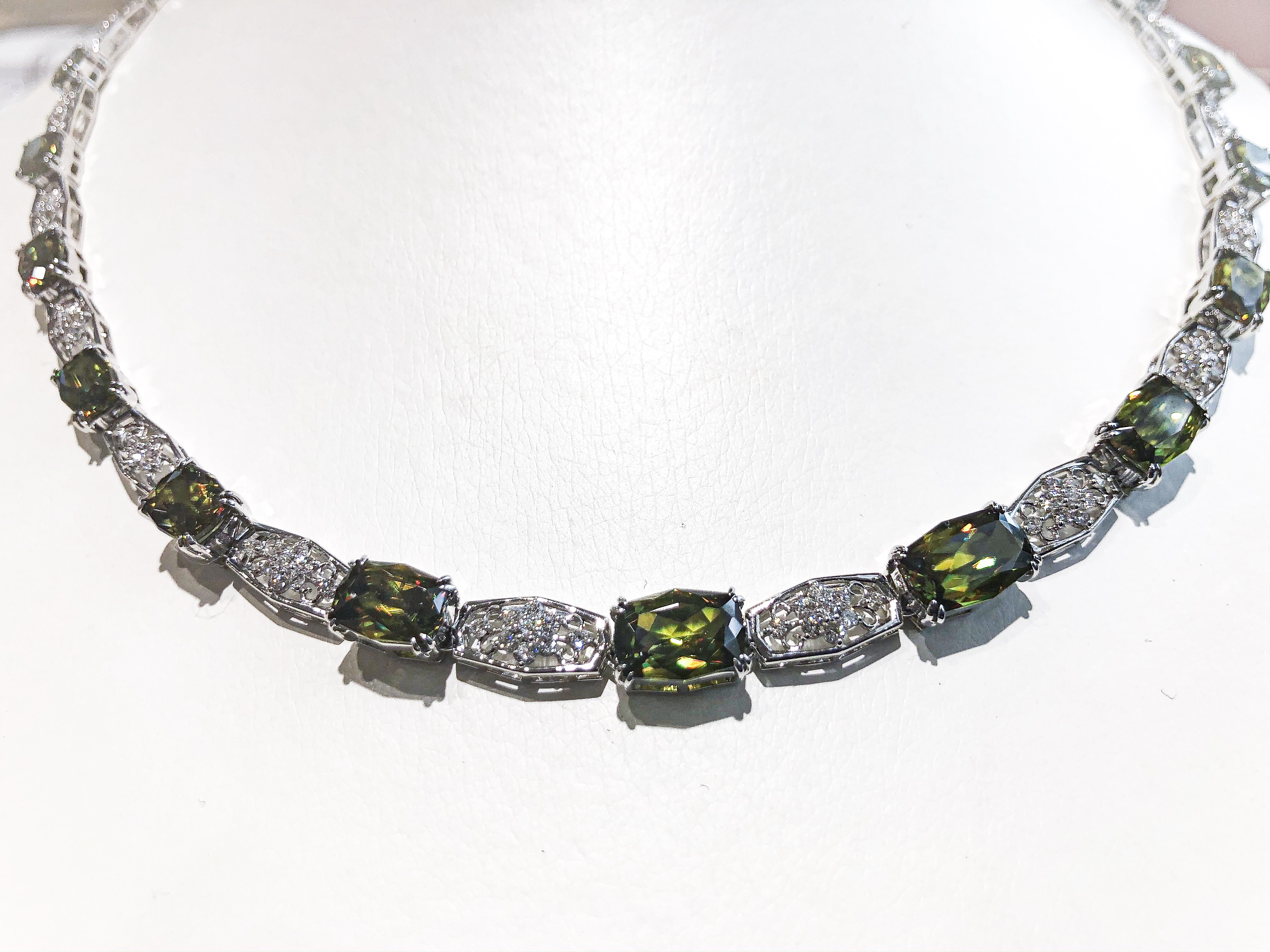 そんかスフェーンを集めてネックレスに加工した逸品です。存在感も高貴なイメージあり、観る人を惹きつけることは、間違いありません。