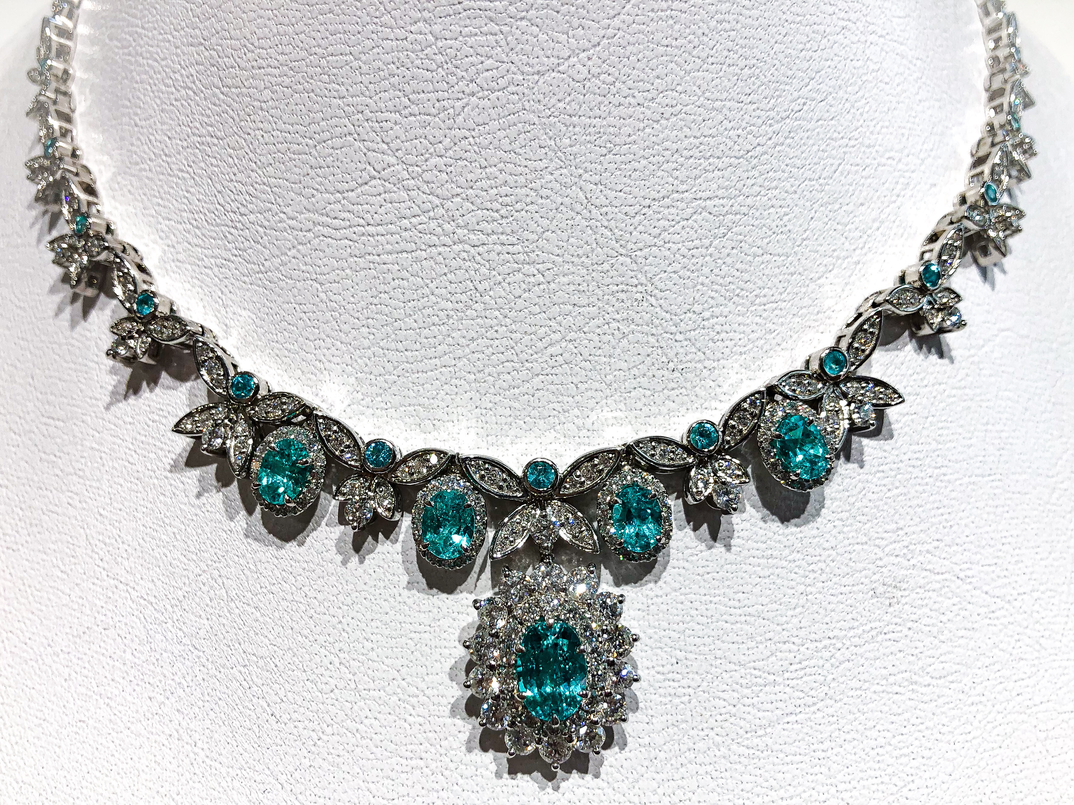 希少なブラジル産パライバトルマリンを贅沢に使って製作されたネックス。