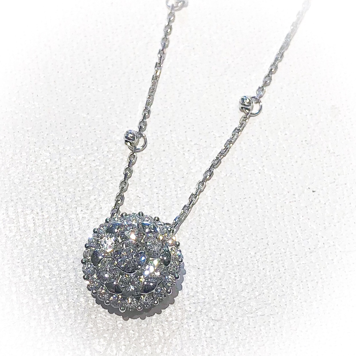 価格破壊商品② 2020年2月3日 by ijima エクレブ K18WG ダイヤモンドペンダント 1.35ct入り 一見すると3ct一粒石のブリリアントカットダイヤに観える。こちらも拡大写真でわかるように7石のダイヤモンドを合わせてセッティングされている。テーブルからクラウンにかけての角度などが微妙まで再現されています。 破壊価格 税込250,000円