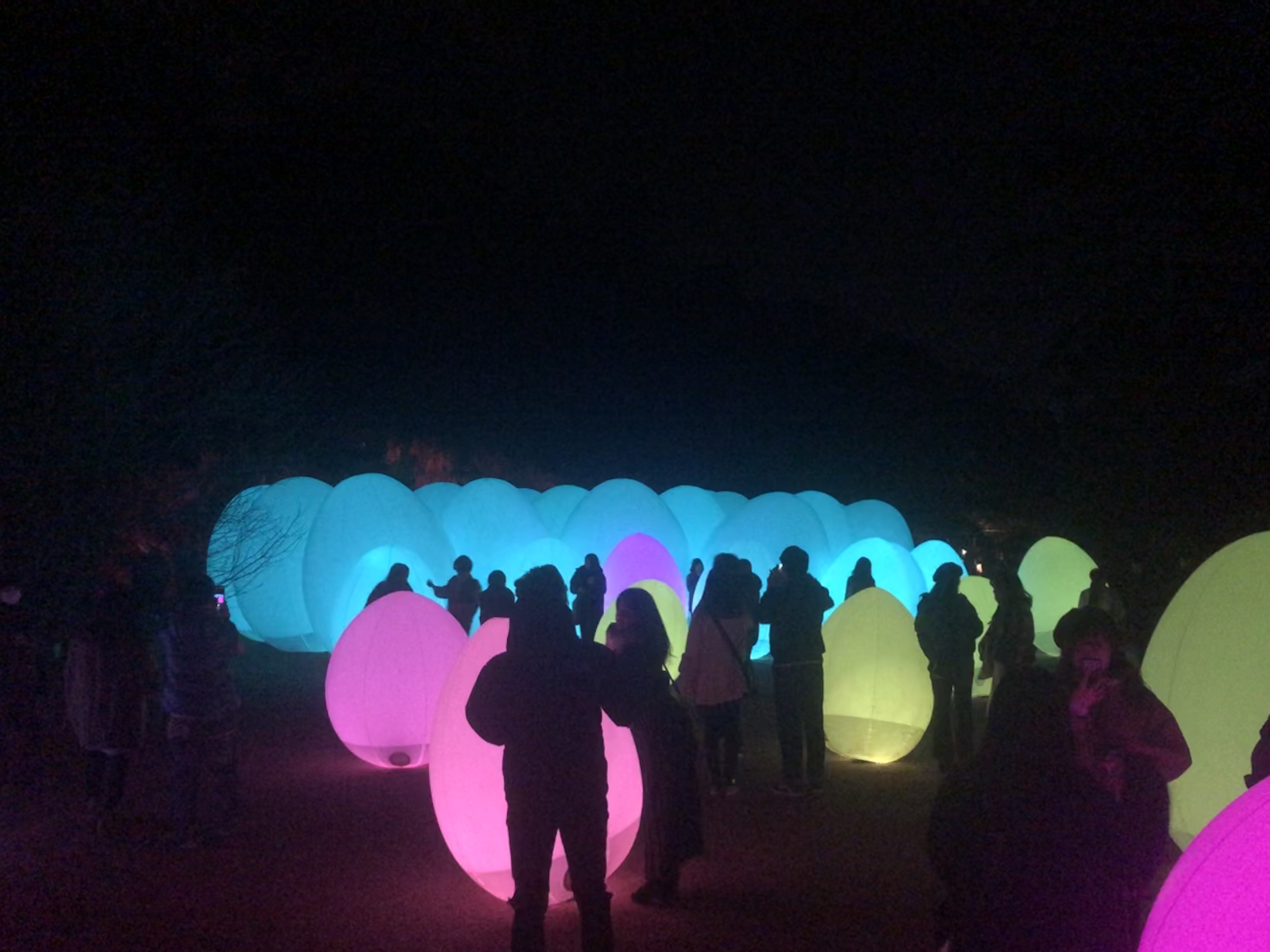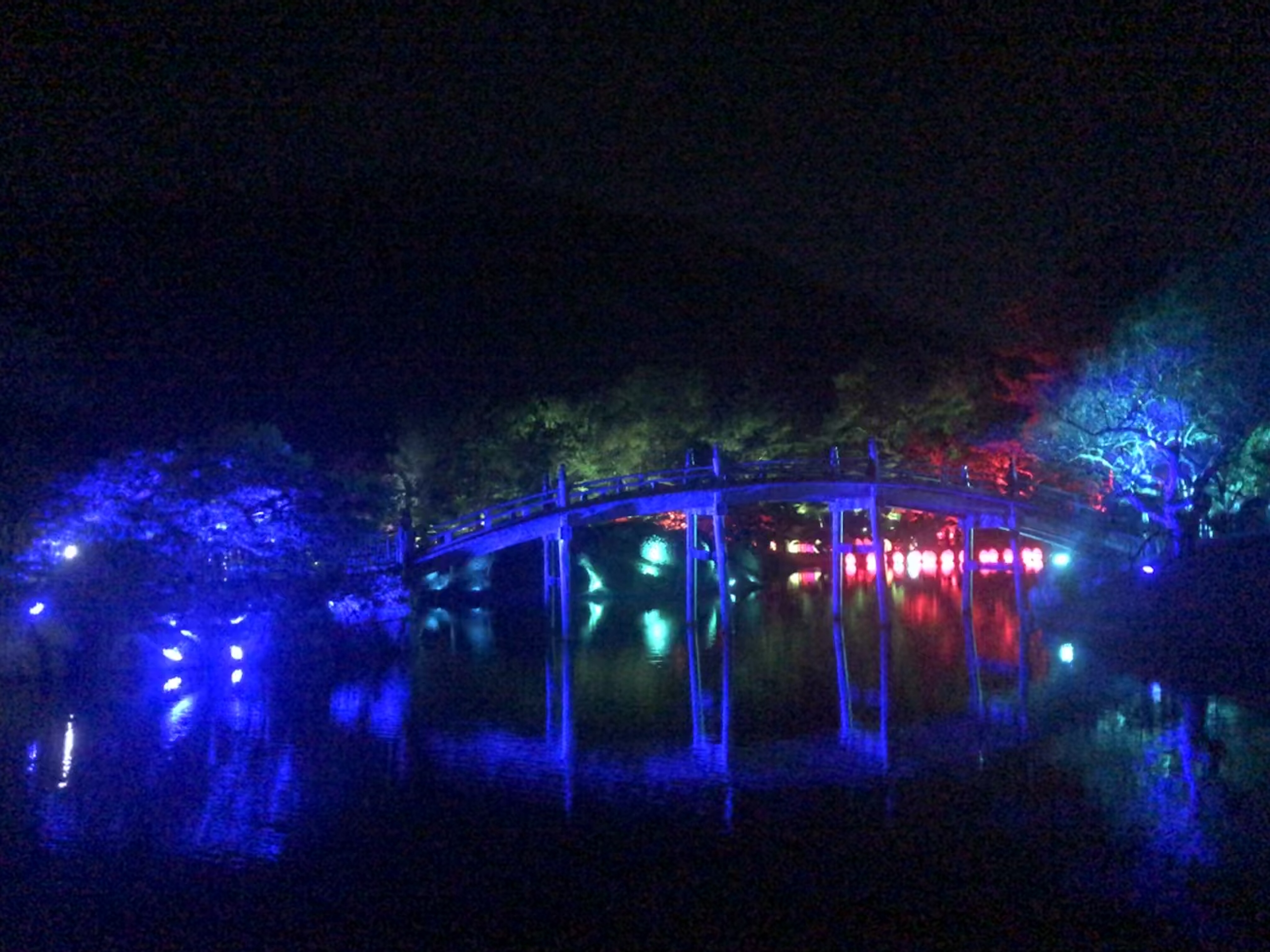 栗林公園チームラボ 2020年2月20日 by ijima 栗林公園のチームラボを極寒の中、観てきました。たくさんの人で賑わっています。 妖しく色彩を変え浮かびあがる松が登場し、池に浮くカラーボールも異空間でした。 なにより、太鼓橋や樹木が池に映り込み、自分が宙に浮いたように感じ、とても美しい情景を堪能させていただきました。