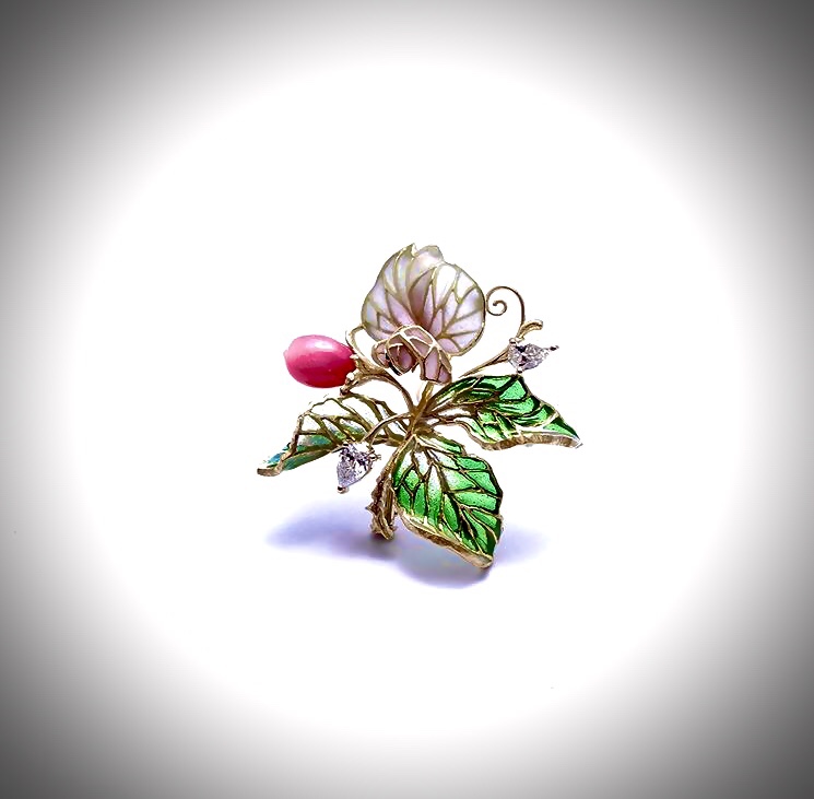 プリクァジュール技法は、ステンドグラスのように見えるエナメル仕上げですが、この加工技術は、大変な作業です。