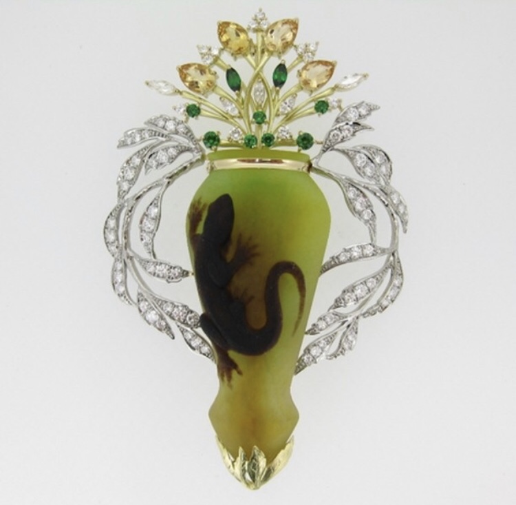 惜しくも、この作品は、今回の展覧会に出品前にすでに売れてしまいましたが、中嶋先生自身が二度と作れませんねと漏らした作品です。エナメルの配合、耐火石膏の作製、燃焼温度や時間など、少しのミスも許されないらしい。