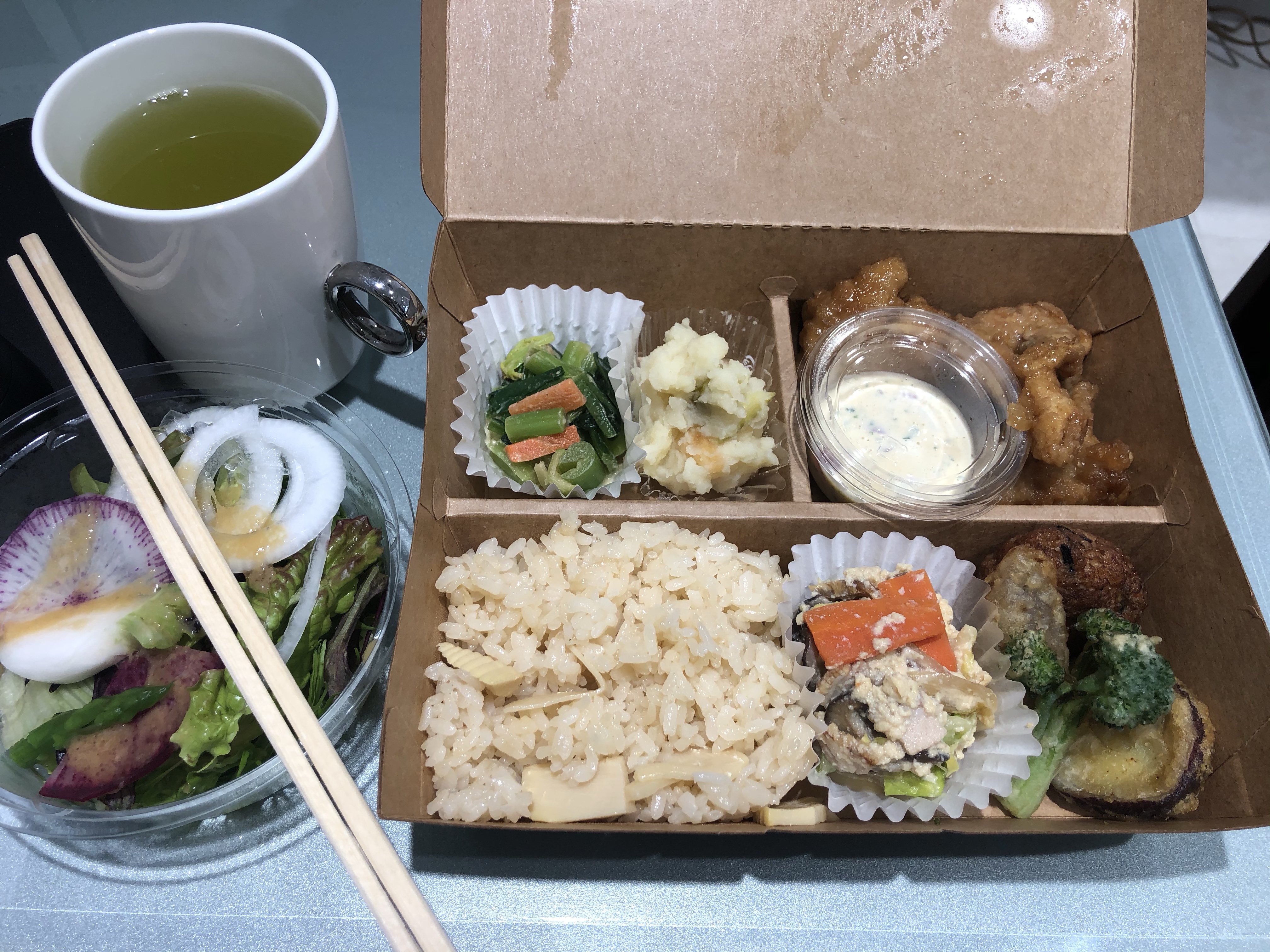当店は、休業中ですが、丸亀町商店街三番街2階(当店の隣)の「まちのシューレ963」は、ランチを弁当に切り替えてサラリーマンの腹を満たしてくれています。