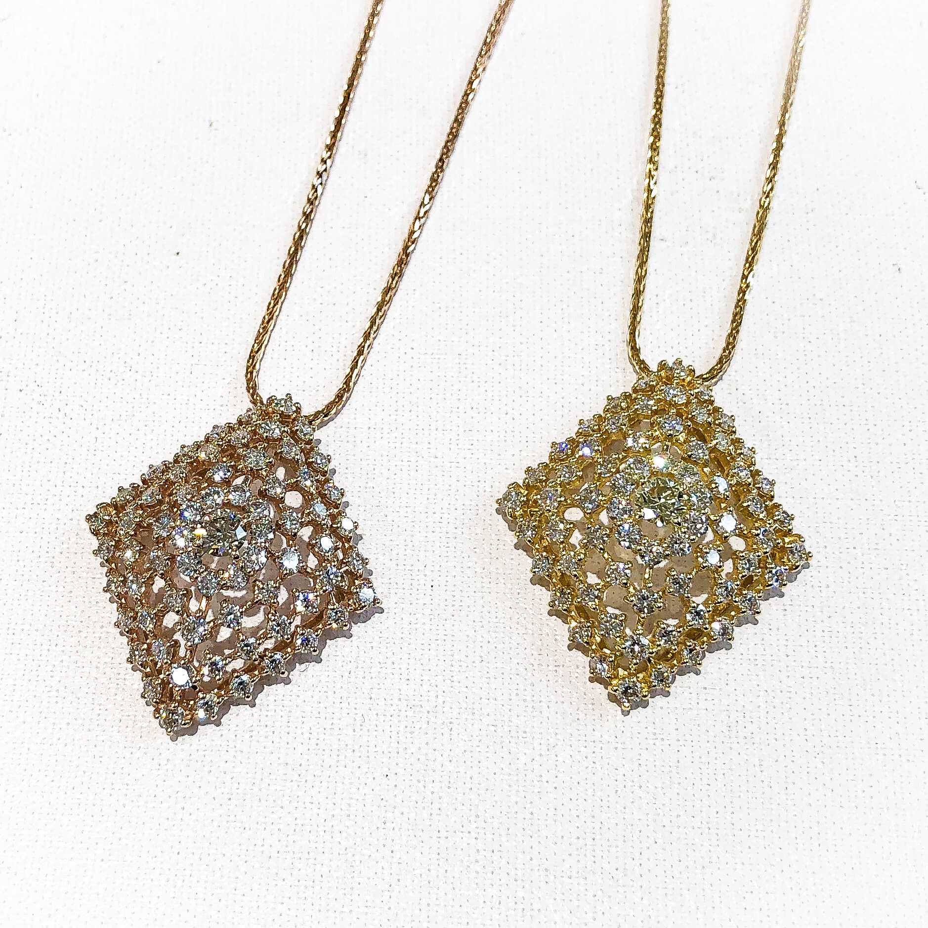 30万円で販売いたします③ 2020年5月18日 by ijima 春のブラウスに少し長めの存在感があるペンダントをご提案いたします。 左 K18PG ダイヤモンドペンダント 0.303ct 2.48ct 右 K18YG ダイヤモンドペンダント 0.321ct 2.46ct どちらも、各々 税込33万円で販売いたします。