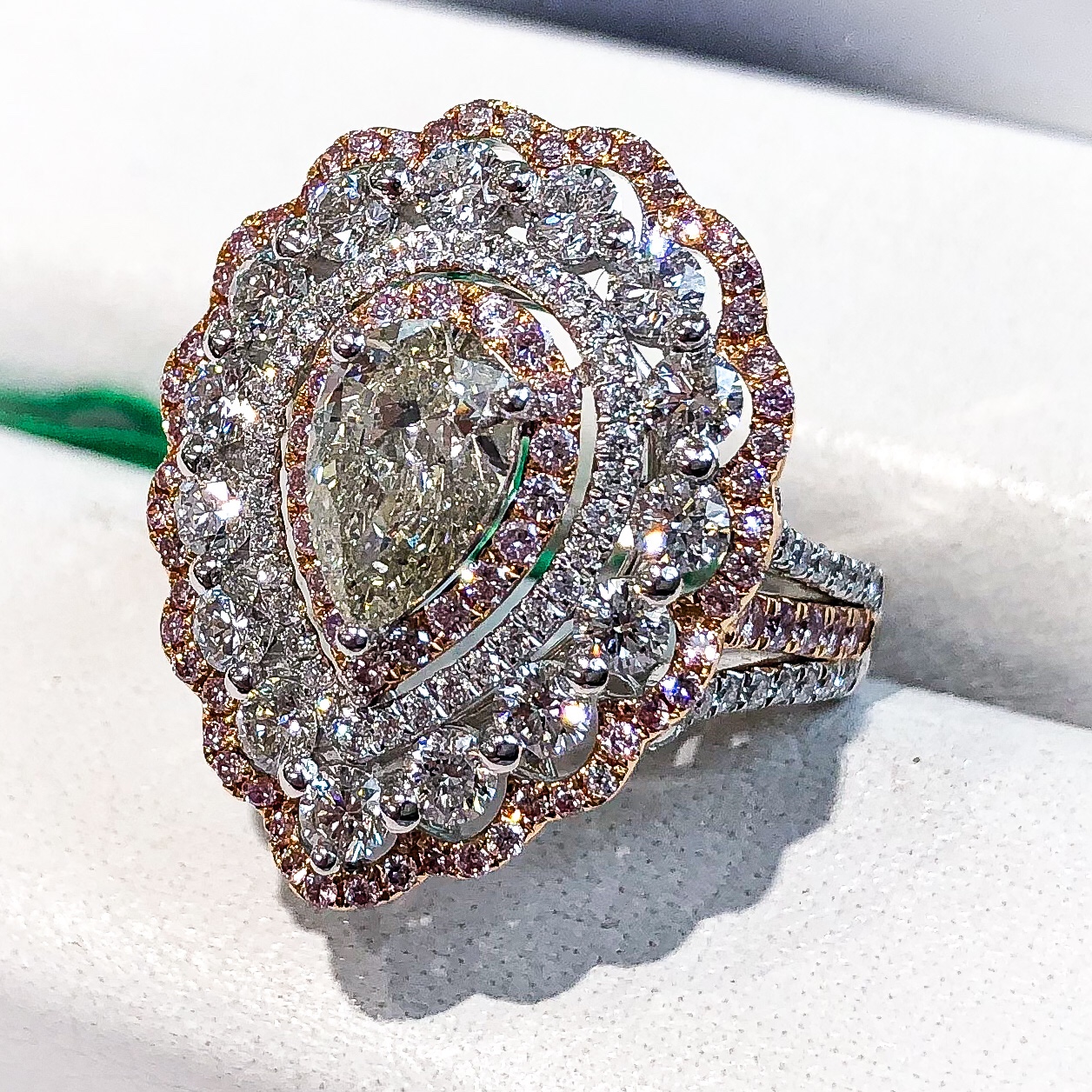 100万円で販売いたします② 2020年5月20日 by ijima 中石は、イエローダイヤモンド 大粒1.086ct 贅沢にピンクダイヤモンドのメレを装飾に使用しています。 取り巻きダイヤモンドは合計1.45ct 税込 110万円で販売いたします。