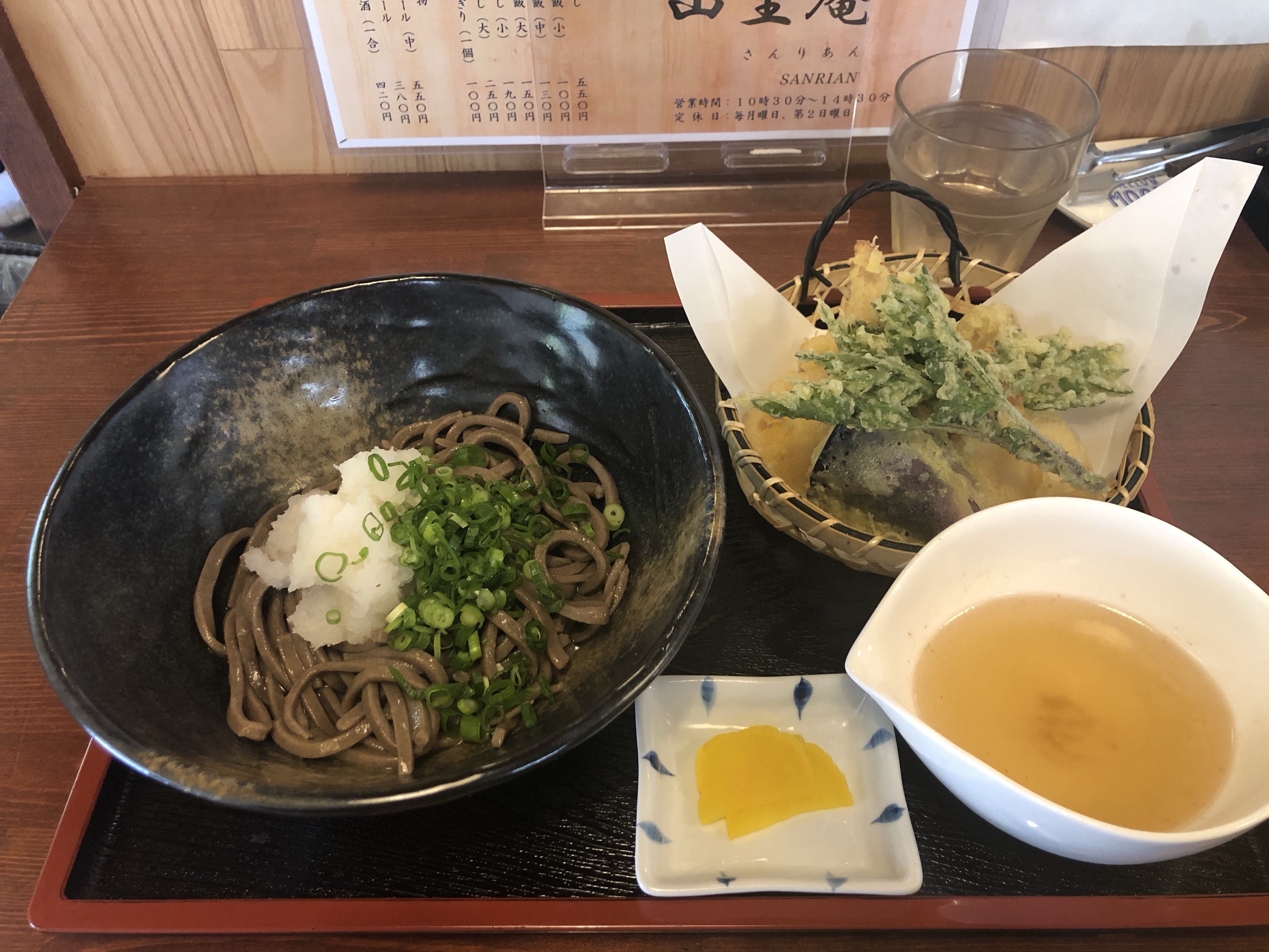 田舎の祖谷そば 2020年6月5日 by ijima 琴平から徳島の池田に向かう国道32号線の道途中にある田舎そば屋『山里庵』 冷やしおろし蕎麦 & 揚げたて天婦羅 祖谷そばは、少しコシがある太め。蕎麦の香りもしっかり楽しめます。冷たく締めた蕎麦に蕎麦出汁をぶっかけて、大根おろしと混ぜて一気にかきこむ。夏大根の辛みが、喉ごしをさらに引き締める。 天婦羅は、注文してから揚げたてを提供してくれますので、サクサクで美味い。