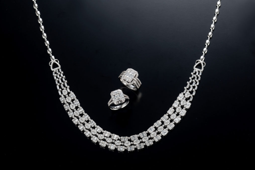 エクレブ イルージョンセッティング の最終過程 2020年6月21日 by ijima イルージョンセッティングも年々と技術やダイヤカットに進歩があり、より小さい爪、立体的な石留めが可能になってまいりました。 リングは、実際に装着しているのを見ると5ct以上の大きなソリティアダイヤモンドを付けられているようにしか見えません。 ネックレスは中心に重量感を持たせ、安定した付け心地を感じていただけます。普段着に付けてもスタイリッシュなジュエリーです。