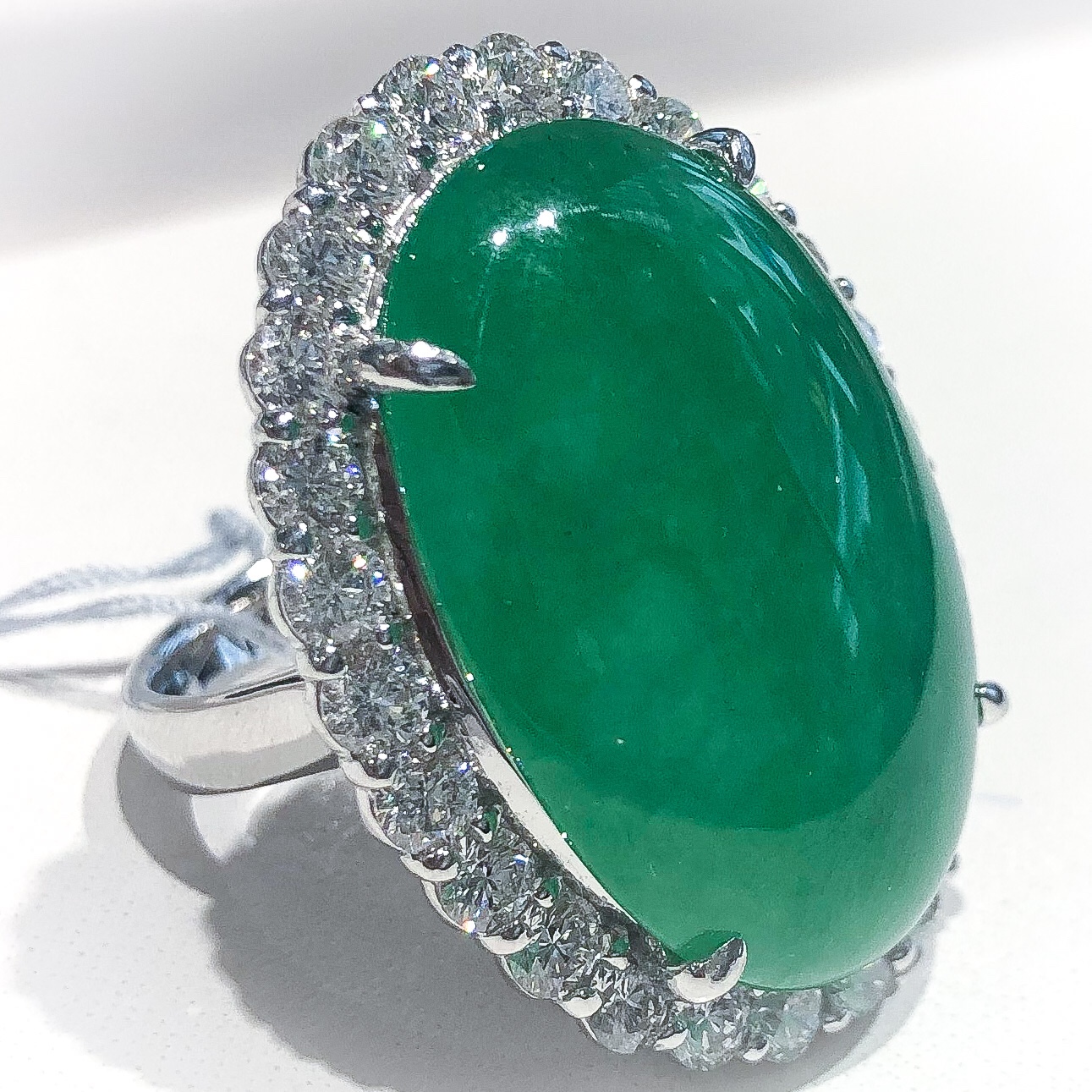 琅玕ヒスイ2 2020年9月24日 by ijima ヒスイには、一つの石の中に色のムラがあることに気づかれるはずです。しかし、これはうつくしさを損ねていなければ、それほど気にかけることはありません。 ヒスイ 29.97ct/ダイヤ 2.81ct PT 色ムラの無いヒスイは存在していないので、むしろ天然石の証だと考えましょう。 ルビーやエメラルドなどは、熱処理やオイル処理を加えて濃い色に加工することは、「エンハンスメント」と言い、正式に認められていますが、ヒスイに熱処理を加えると「トリートメント」という名の処理方法になり財産価値は下落してしまいます。