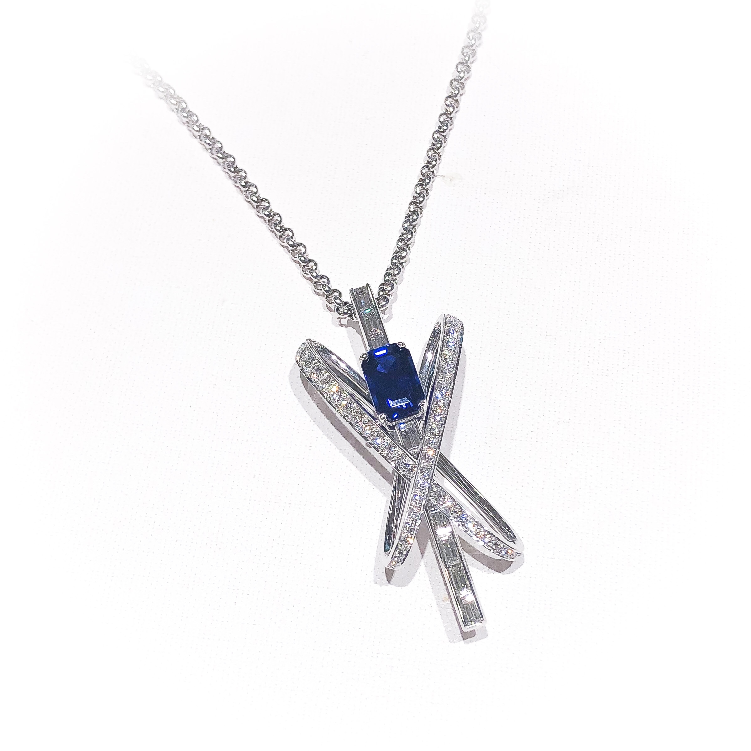 D&D サファイアペンダント 2020年11月4日 by ijima サファイア 3.14ct ダイヤモンド 1.04ct/0.70ct チェーン50cm 素晴らしい色の角型サファイアを立体感のあるペンダントに仕上げています。 定価 3,300,000円